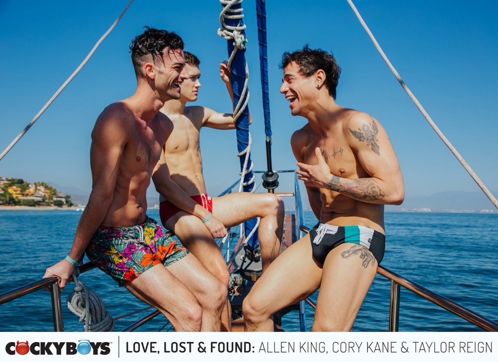 CockyBoys released “Love, Lost & Found” part 1 today. Couple Taylor Reign & Cory Kane are off to sunny Mexico to have some fun with each other...and whomever else they might meet! They've invited their friend Sean Ford, newly single and in need of cheering up. But, Sean isn't quite ready yet to leave his woes behind and cut loose like his buddies, even when he goes with them to a party yacht with other "open-minded" couples (one being Allen King & Levi Karter).
