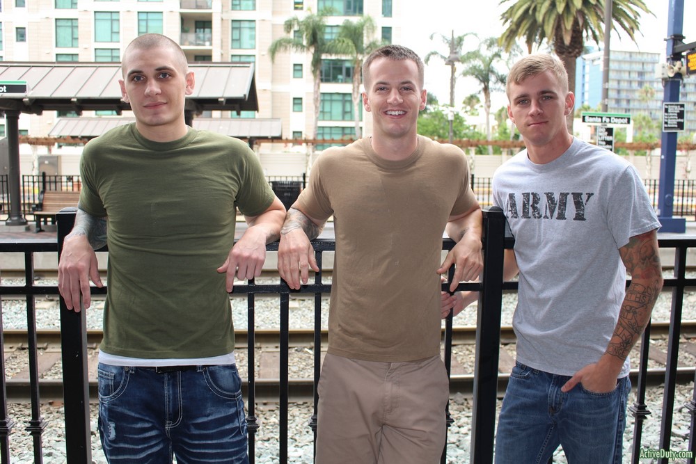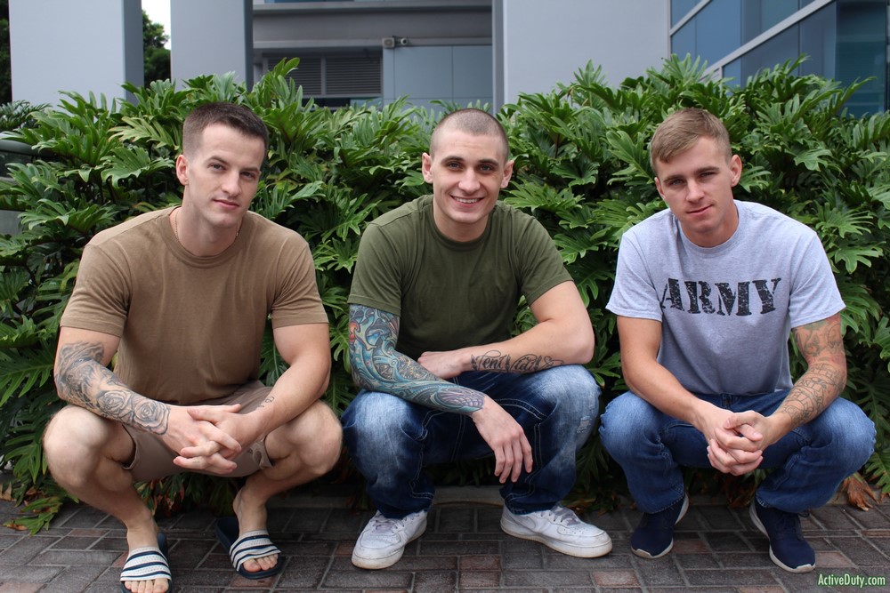 The Active Duty of today: Ryan Jordan is the first to kick back and let Quentin Gainz service his big cock while Alex feeds his cock deep into his open mouth. Ryan gags on Alex's big dick as Quentin worships Ryan's throbbing dick. Ryan takes a quick break and lets Alex in on the action. Alex lies out on the bed as Quentin's eager mouth begins to suck on his hard dick.