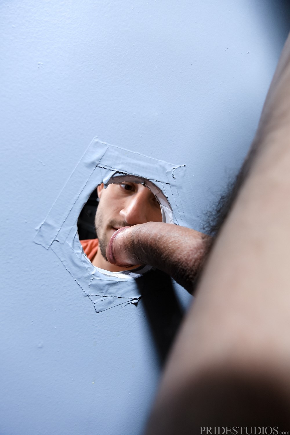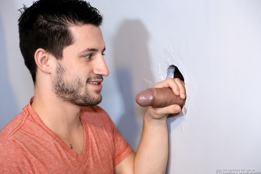 Pride Studios released “Big Cock Glory” today. Alexander Garrett is ready to have his big cock serviced through the glory hole in the bathroom stall. Alex Gray enters the washroom and hears a noise coming from the stall and as he investigates he discovers a huge uncut cock on the other side of the glory hole. He starts out stroking it with his hand and then drops to his knees and starts worshiping it.