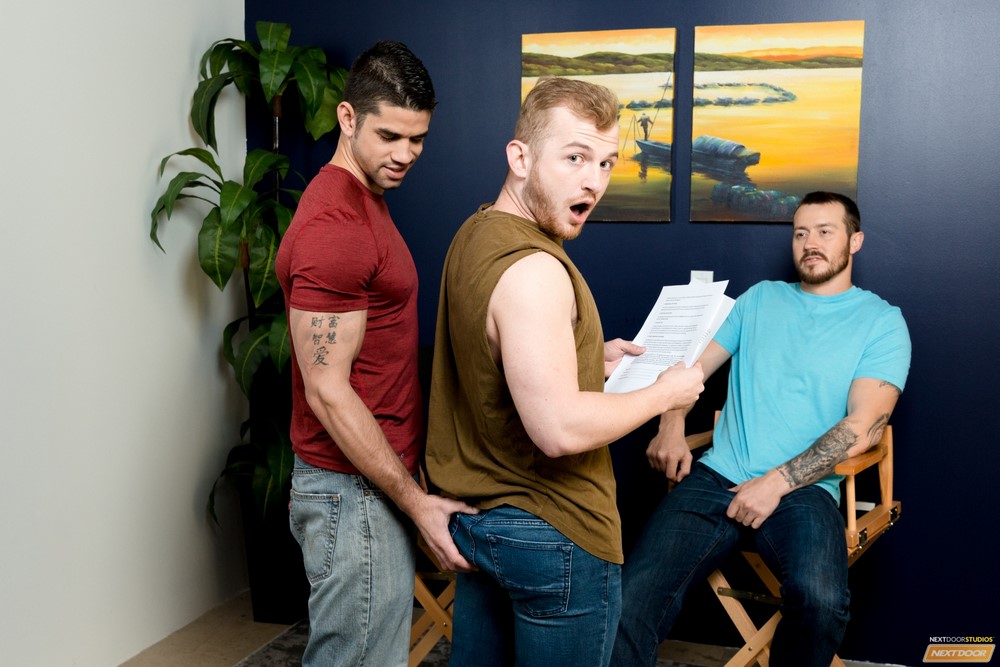 Next Door Studios released “Loose Up Audition” today. Archer Hart really needs this part, and casting director Mark Long is confident he's got the goods to deliver the performance Mark is looking for, but Archer seems nervous and in need of just loosening up. Mark enlists his assistant Jason Richards to look in on the audition, and Jason agrees with Mark that Archer really just needs to relax a little.