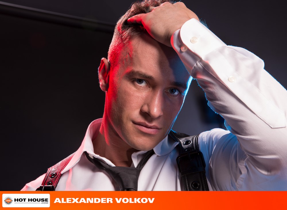 Hot House released “Depths Of Focus” today. It's quiet on the Hot House set as Austin Wolf preps his photography gear. Production assistant Gabriel Cross introduces today's subject: Alexander Volkov. 'Today's going to be a closed set. You guys can go,' announces Austin to the other crew. After loosening Alexander's tie, Austin steps behind the camera and starts shooting. After a few poses, Austin instructs Gabriel to remove Alexander's shirt. As Gabriel opens Alexander's shirt to reveal his smooth, muscular torso, their eyes meet and they share a smile. Alexander's next look is an edgy black bodysuit, and after that Alexander steps into a tight, white jockstrap.