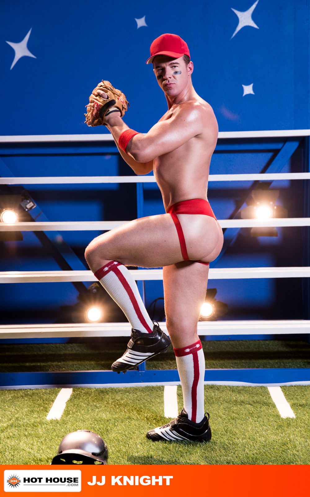 Go hard or go home at Hot House! These nine horny athletes from three different sports love to suck and fuck in their gear! Sit back and watch their ‘Gear Play’ as they peel off sweaty jockstraps, get their balls played, show off their dripping muscles, and blow off steam from rough games and long, hard practices for their coach/director Nick Foxx. Catcher Beaux Banks gets railed by starting pitcher, Nick Sterling, as JJ Knight gets his baseball-bat-sized cock sucked by Beaux. JJ steps in as the relief pitcher and fucks both young jocks until Beaux's lips and beard are dripping with cum.