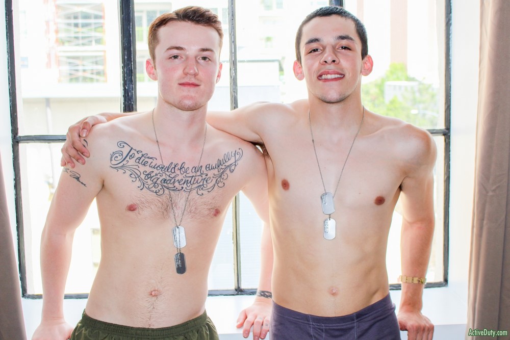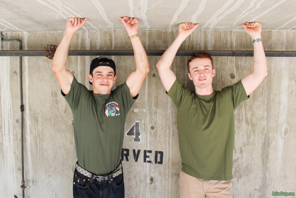 Looks like one of our freshest Active Duty recruits is back for more and that's Billie Starz. He did amazing in his sexy solo debut back in March and now he's ready for the next step in becoming a true veteran. Dominic is the lucky vet and who better than Billie to fuck that nice round bubble butt of Dominic's. Billie really hasn't had much experience with men but by the looks of it he's knocking it out of the park.