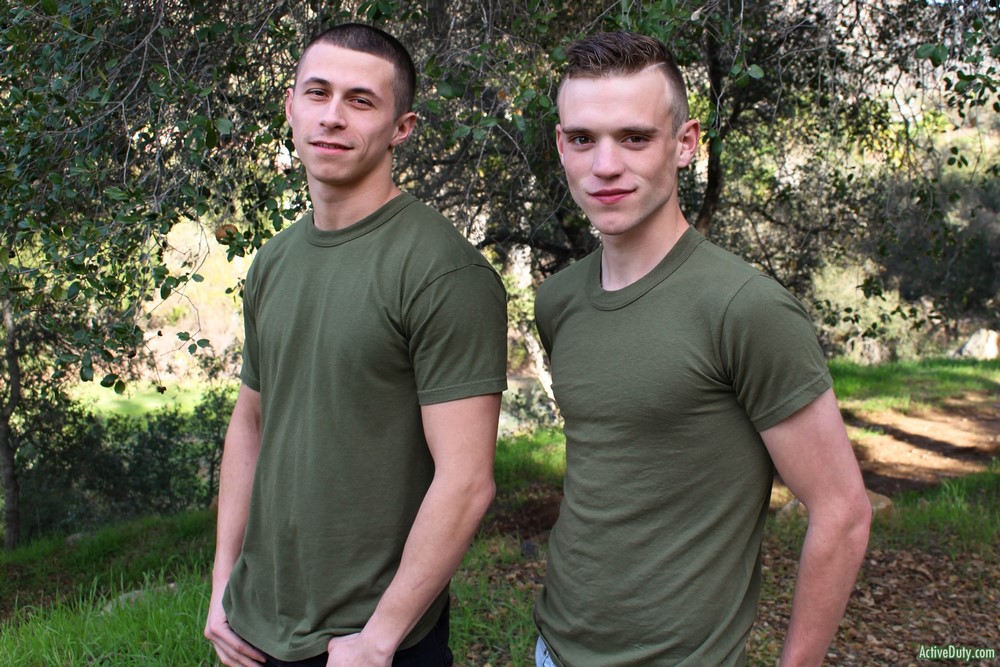 Bradley loves the dick sucking by his fellow soldier but he moves into sniper position and Scott easily can get behind him now and bury his wet tongue deep in Bradley's waiting ass. Bradley is super horny now and can't wait any longer so he bends Scott over and pushes his big dick into his tight ass stretching it wide open until his balls rest against him. He starts fucking slow but once Scott's ass opens up he thrusts harder and faster making Scott moan and squirm with pleasure.