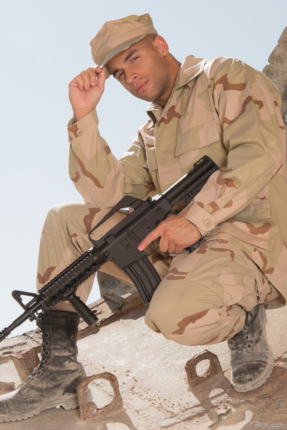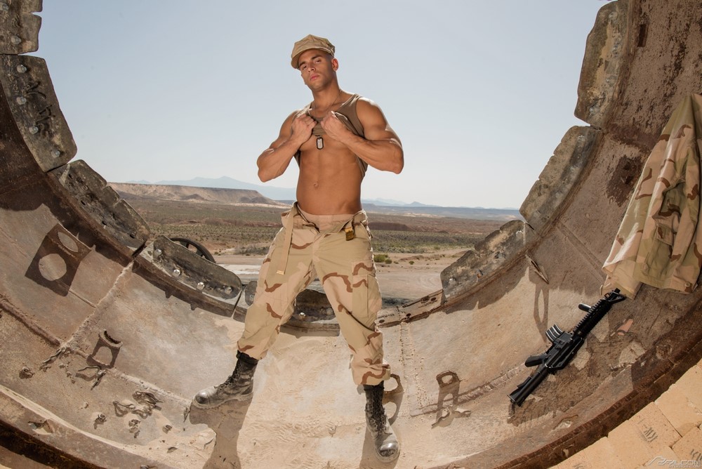 Falcon Studios has released part 5 of their new “Code of Silence” movie today. Sergeant Sean Zevran comes up behind his subordinate, Brandon Evans, and grabs his ass. Brandon is taken off guard. 'I see everything in in this camp,' Sean says. 'I know you two have been sneaking out in the middle of the night to suck each other off.' Sean pulls Brandon's pants off and asks if he likes sucking dick.