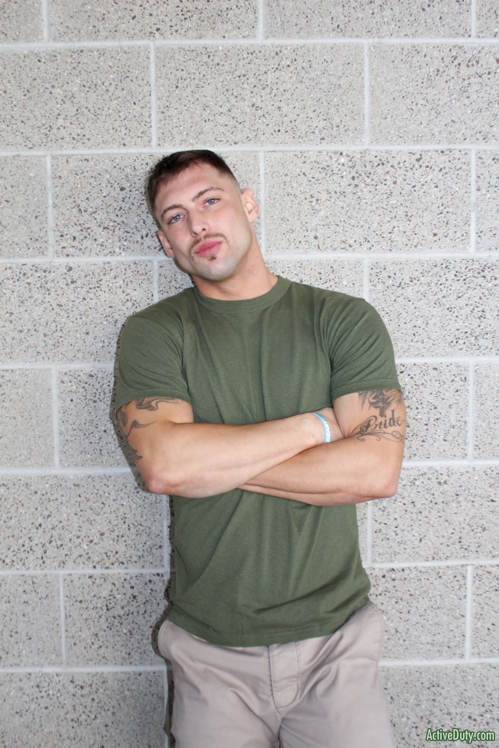 Active Duty released at new solo scene today. Calvin has big juicy lips that hypnotize you in to thinking just how amazing it would be to have them wrapped around your cock or better yet seeing him worship one of our vets. His body is in amazing condition and he has some very well placed ink. His look and those hot lips of his will drive you crazy as he begins to tug on his hard cock.