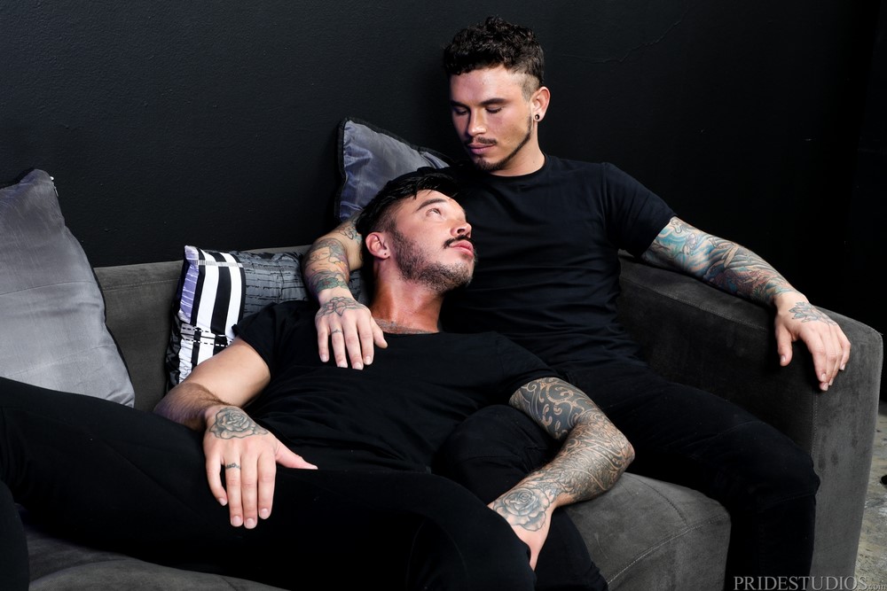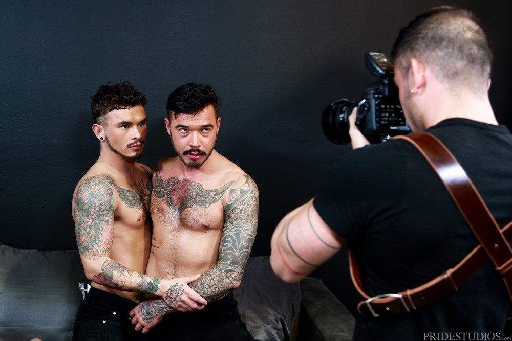 Pride Studios released “Couples Portrait” today. The scene opens with Cesar Rossi talking to Seth Knight and Cris Knight about what type of images they want to get of themselves. After agreeing on intimate/sensual portraits, Cesar starts shooting them. He then asks them to remove their shirts for a sexier pose to which they agree.