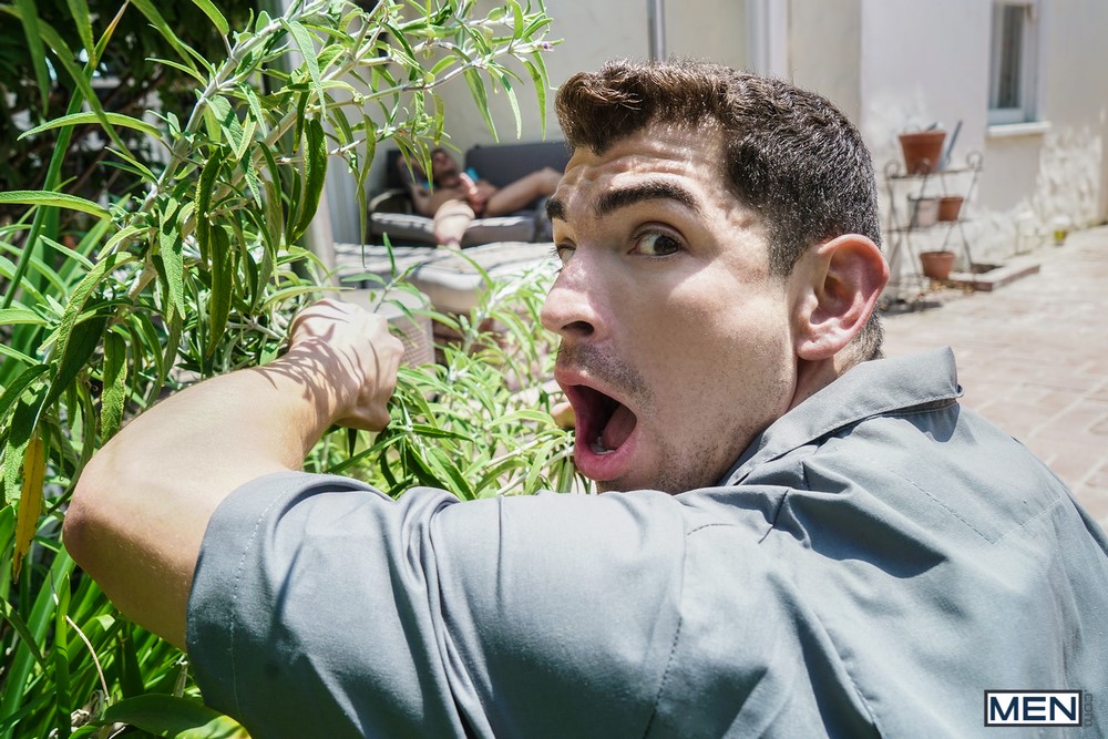 Gay porn mega site Men.com‘s sub site Str8 to Gay released part one from a their new mini series, called “Desperate Househusband : A Gay XXX Parody”, today. Cliff Jensen is feeling like a neglected house husband since his wife has been overworking and not putting out. Jeremy Spreadums, the sexy gardener, is willing and ready to give up some ass and offer up some much-needed cum bursting relief.
