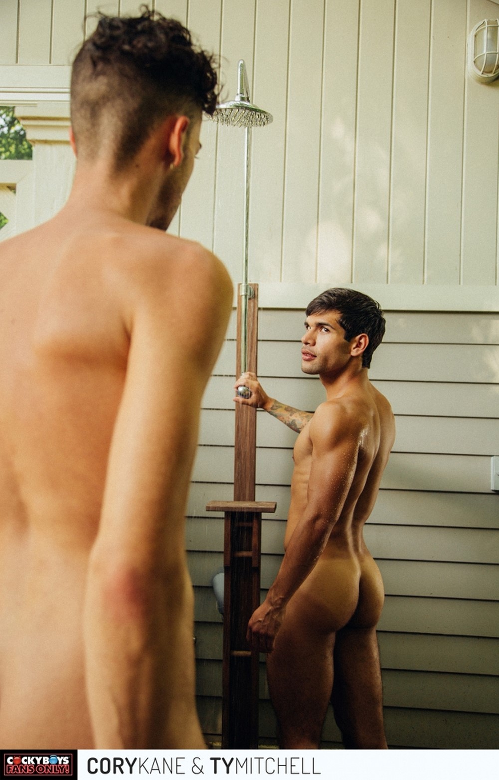 Ty Mitchell makes his exciting debut in as condomless CockyBoys : Fans Only! scene, enjoying one of his favorite, fun things: having sex in the great outdoors. You'll see that because of a special connection Cory Kane is just the right guy to welcome Ty and he can't even wait to do it. Just as Ty is about to pop into the outdoor shower a naked Cory shows up with an enormous boner. Almost immediately Ty is hard too and after some dreamy kissing Cory whisks him away.