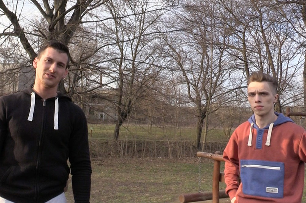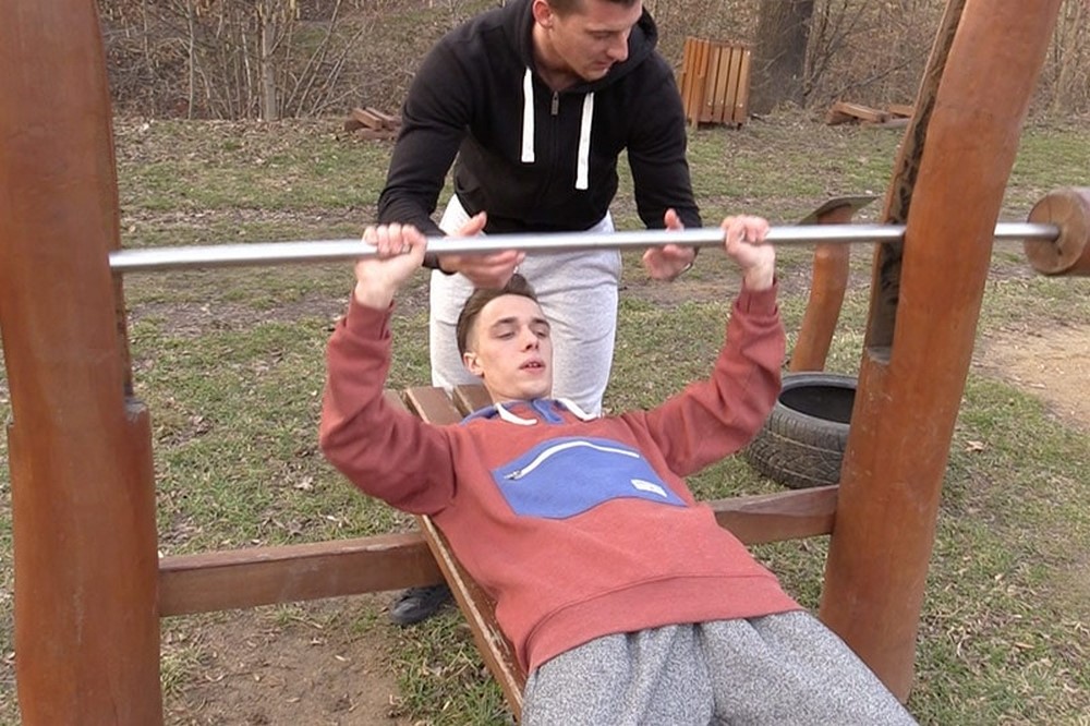 Czech Hunter went by a park today. Inside was an outdoor gym so I tried to check out the nice boys who were training there. Some were just gorgeous. There was a young boy trying to beef up a little. He even had a friend show him the ropes. I fooled around with them for a moment and enjoyed the view. Neither of them was a professional, fitness was just a hobby for them.