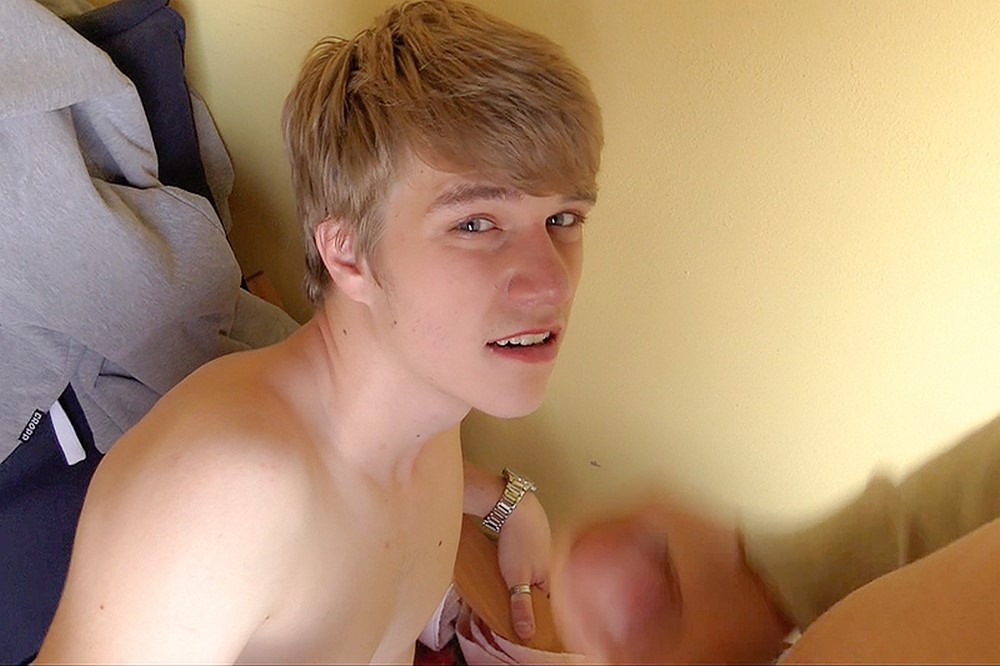I wasn't paying too much attention to the story, I was more interested in his cute face and nice blond hair. The poor boy stayed overnight at a hostel, where someone stole his wallet. With all the money he made the previous day. That's why he was wandering around the city begging for money. He just wanted to buy a bus ticket home. I offered him my help and much more. He just had to go for a little walk in a park with me.