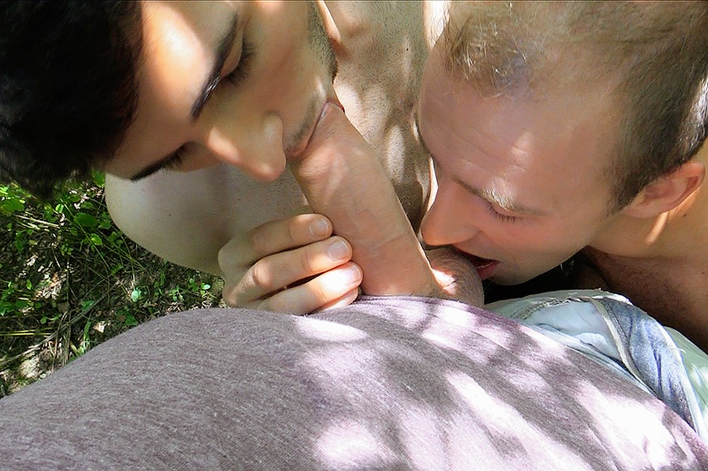 It wasn't easy but finally we ran into a former lifter who had a very nice body and was willing to consider our offer. I was very horny and not willing to wander around looking for the “perfect” spot. I took them both behind the bushes right next to a path full of people. The boys were very inexperienced and shy, which made the action very sexy. Then I drilled both their holes.