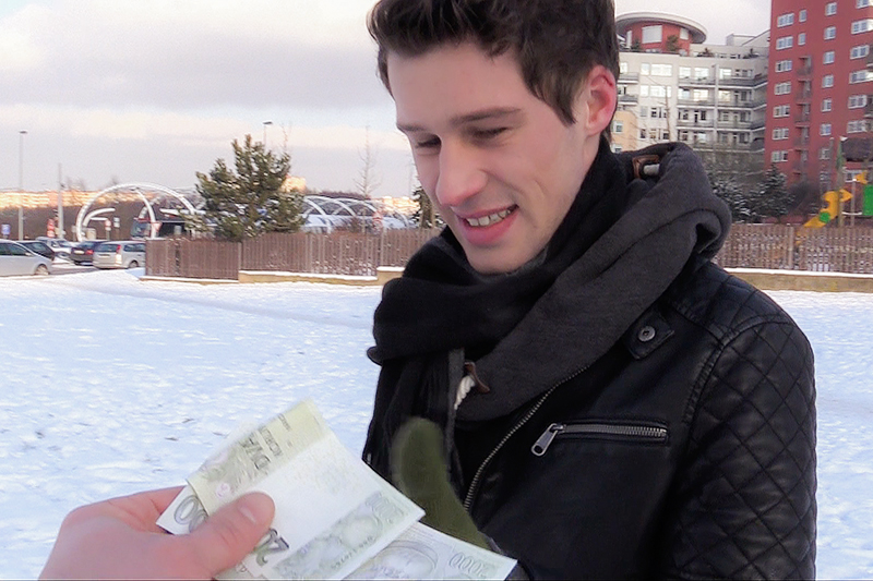 The Czech Hunter was walking around Prague suburbs looking for a catch when I saw this young looking guy playing with a toy car. At first, I was interested in the car because it drove really fast in the snow. I started talking to the boy and found out that he was not some kid playing with a toy. He was an 18 years old student. Quite a cutie. I didn't waste any time and started giving him various naughty offers.