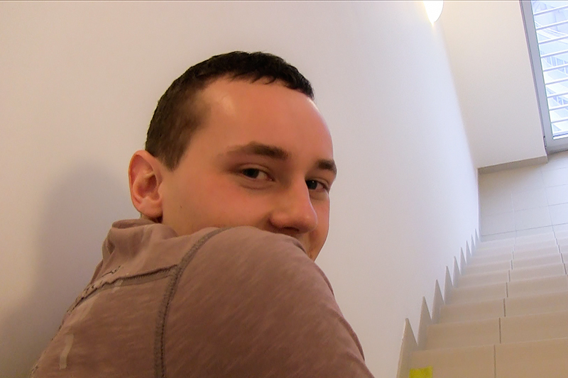 That's why I offered him a special way to broaden his horizons and make some nice cash at the same time. He surprised me a lot when he agreed, we just had to find a discreet place where to do it. And we found a very interesting spot indeed. We simply slipped in an apartment building and did it on the staircase. We were lucky that no one saw us. Or heard us. We were rather loud.