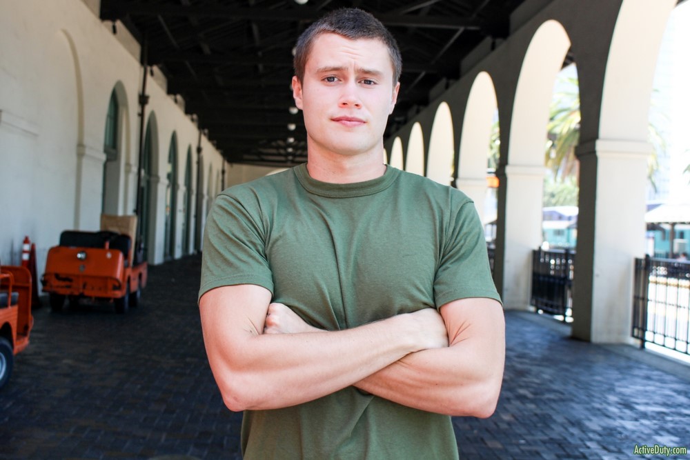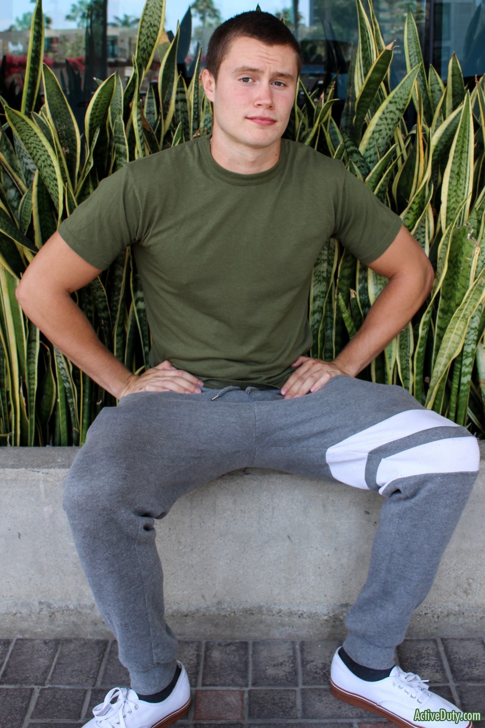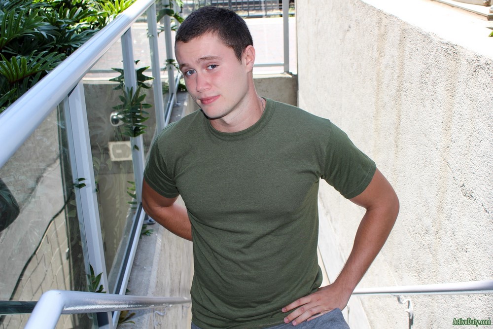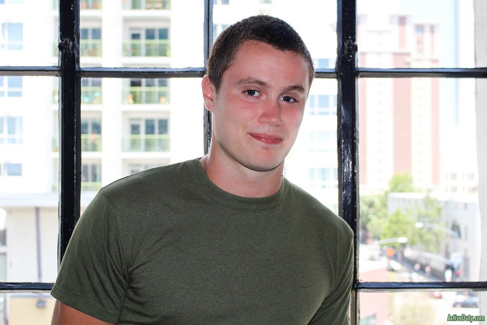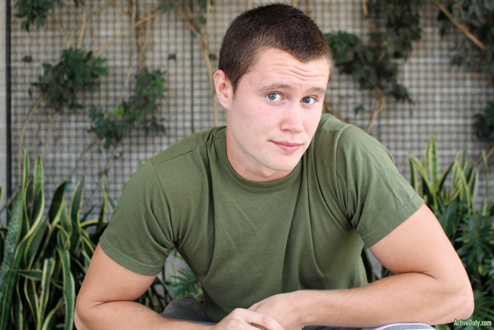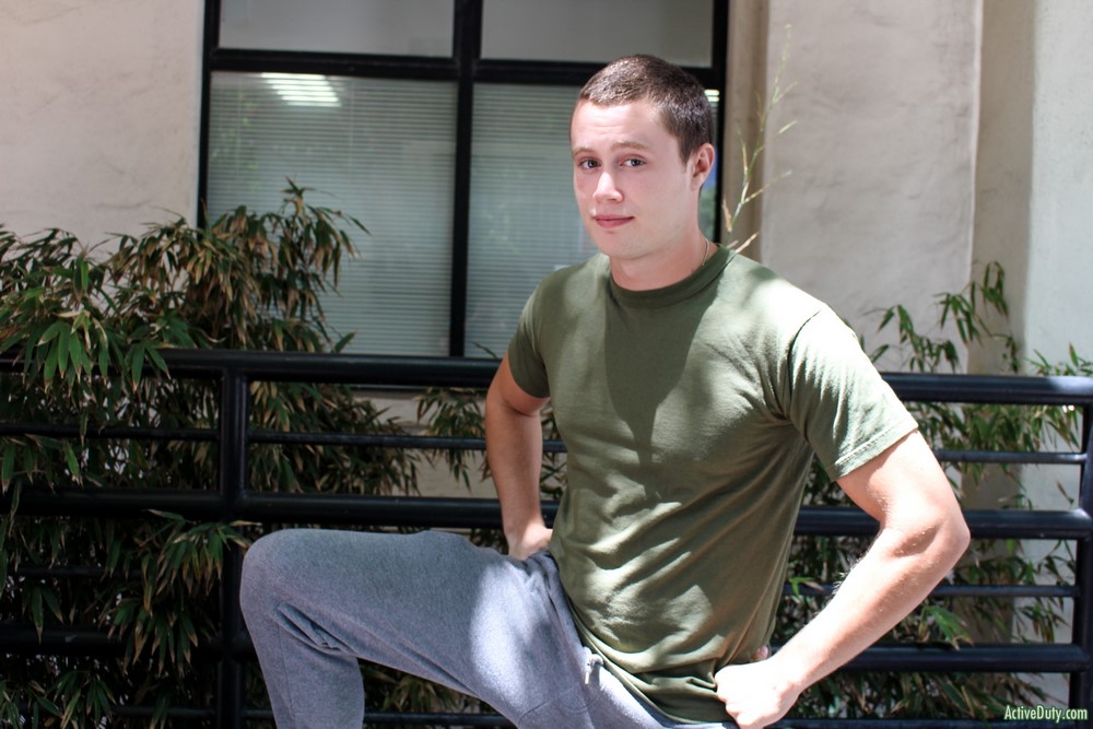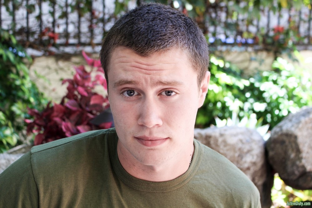Active Duty released a hot new solo scene today. Hey Troops, Today we have a very sexy young man who is only 21 but stands a very tall 6 foot 2 and weighing in at 185lbs of sexy lean muscle. Damien Nichols likes to hang out at the gym working on his sexy body and he loves to go hiking on any new trails that he can find. He's an avid outdoorsman and you won't catch him being lazy sitting on his couch playing video games but you can catch him here with us stroking his nut out for you.