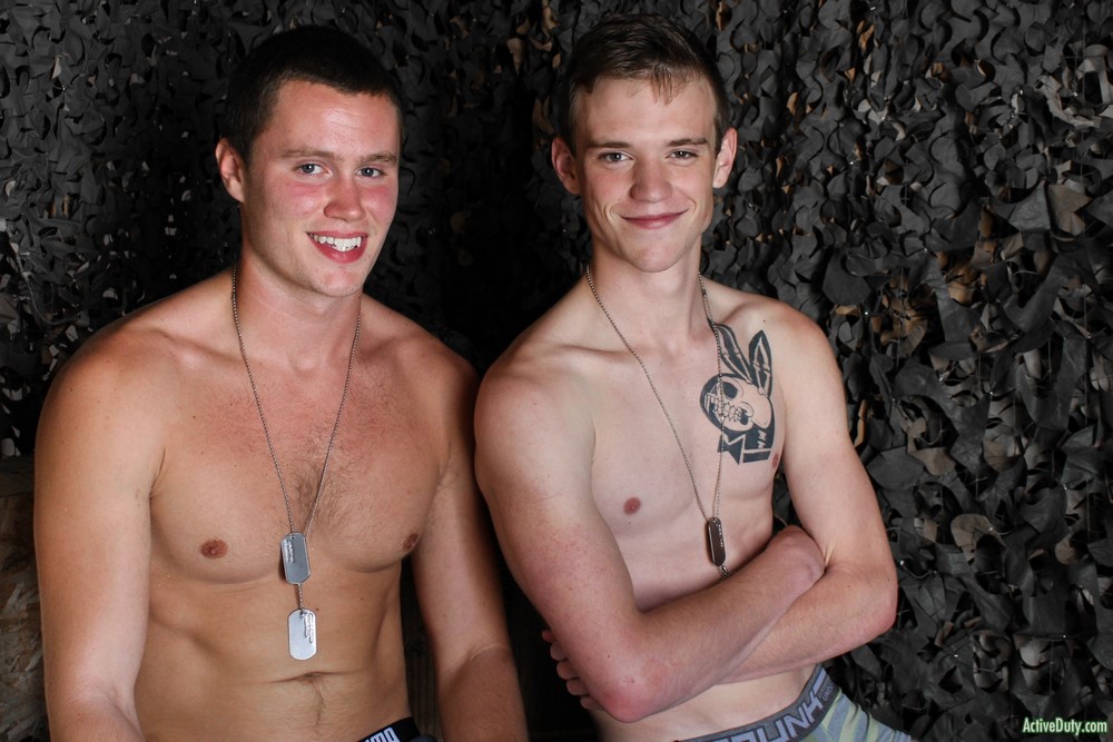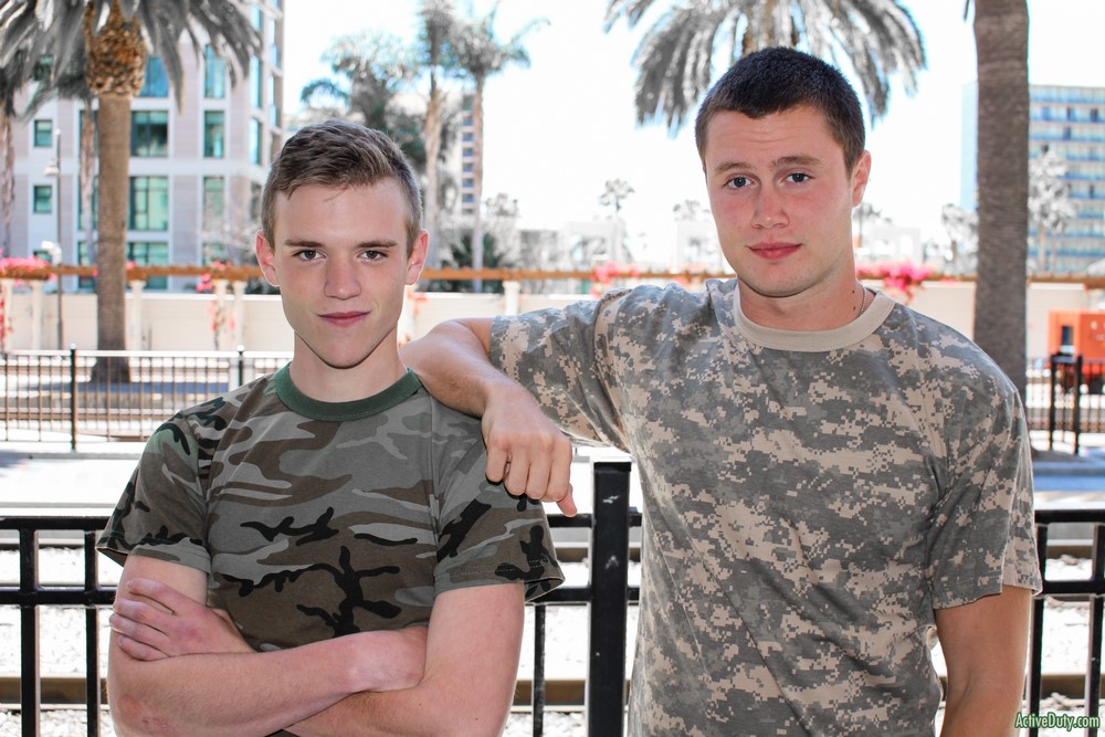 Damien's skills are improving at light speed and Scott makes a remark on just how good his cock sucking skills are for a new recruit. The soldiers are horned up now after some great cock sucking and now Damien has Scott's ass spread wide as he slowly pushes his hard throbbing cock into Scott's very sexy ass. Scott moans with pleasure and maybe some slight enjoyable pain as Damien picks up speed thrusting deep into Scott's tight ass.