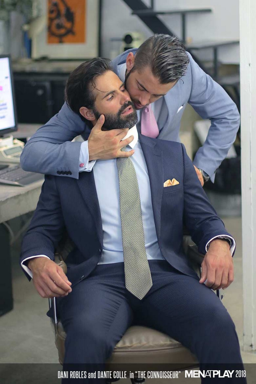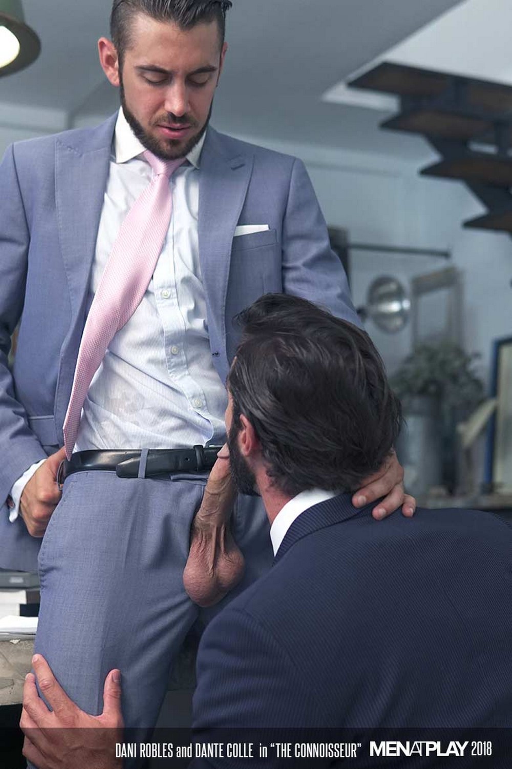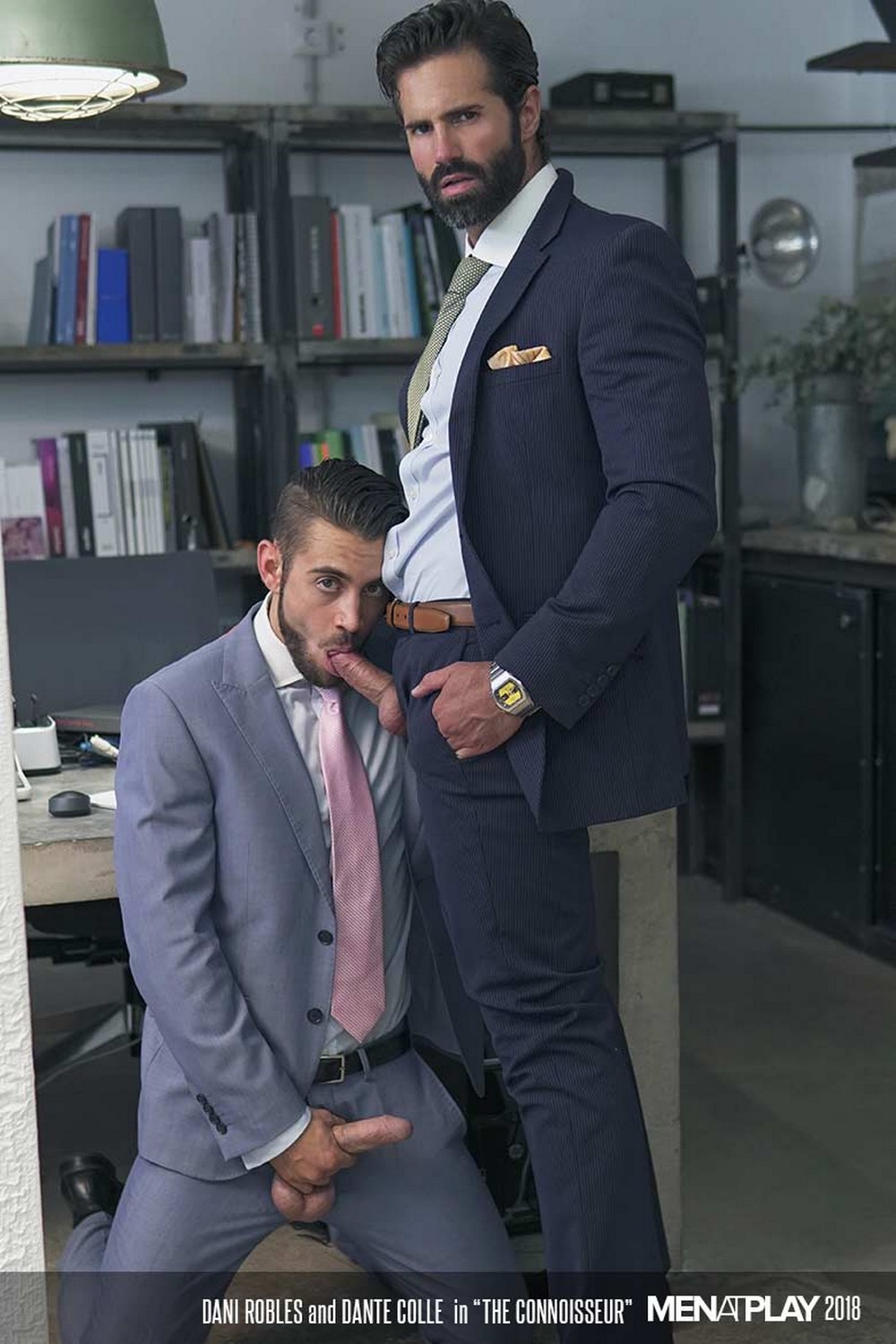 The Connoisseur shows us what happens when Dani, still a horny, well-suited art connoisseur, tries to buy some paintings from Dante. After confessing his prior “arrangement” with Dario, Dante figures he can get in on the action, meaning Dani’s stretched-out hole. But first, Dani and Dante service each other’s stiff cocks. There’s no better site than seeing two men in business wear slurping on each other’s cock. Dani offers up his manpussy like he usually does and grunts with joy while Dante his eager butt forcefully.