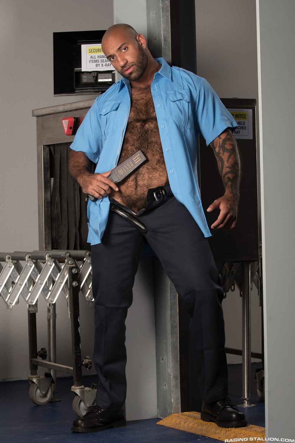 Raging Stallion 's new and hot movie is called "TSA Checkpoint". This movie from the hands of Steve Cruze has 6 hot scenes and the hottest hunks. When Rikk York sets off the alarms at a TSA checkpoint, Officer Daymin Voss finds some contraband shoved up Rikk's fuzzy ass. Daymin probes the traveler until he sets off both of their explosive devices.
