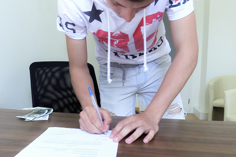 I really liked his shyness, he was young and adorable. Thank god he wasn’t able to pay our fee, it gave me a nice chance to try my moves on him. When he got naked, my cock twitched with pleasure. Innocent young man about to get penetrated by my horny cock. The boy was a bit scared by my size but I managed to calm him down. For a moment. When it slid in his tight ass, he knew he was right to be afraid. But he suffered through the pain like a real man.