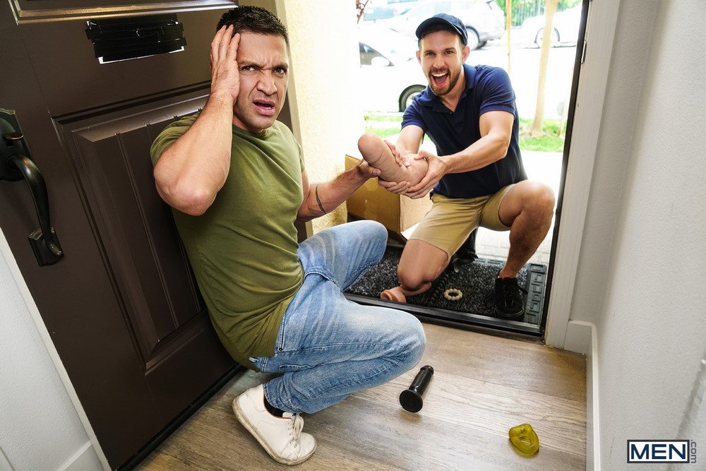 Gay porn mega site Men.com‘s sub site Drill My Hole released part two of their hot new series “Tired of Being Good” today. Hazel-eyed Dominic Pacifico is surprised to see dark-haired Casey Jacks at his door with an unknown package, and he’s even more surprised when it ends up being a box full of sex toys! He rushes muscular Casey into the house, he doesn’t skip a beat, dropping to his knees, and stuffing chiseled Dominic’s cock in his mouth. Dominic turns the bottom around and pounds him doggystyle until they each bust a nut.