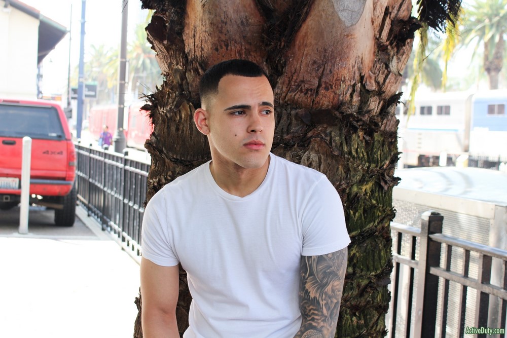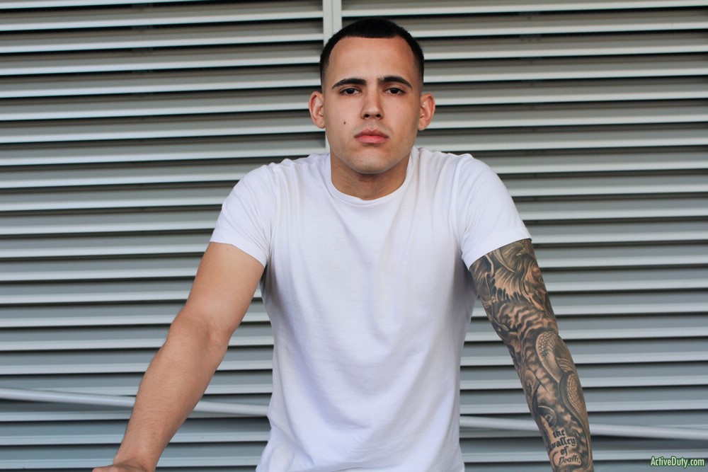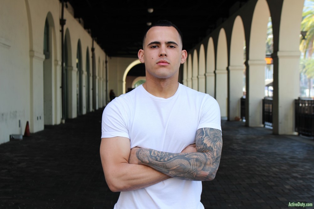 The recruits keep falling in waiting for their chance to be a part of this great Active Duty squadron. Our newest rookie Fernando who is 23 standing at 5 feet 7 inches and weighing in at a strong 165lbs is ready to show off his talents. He is an avid Soccer player and fan plus he likes to let loose with some Ji-Jitsu when he's not strangling his cock with his big hands.