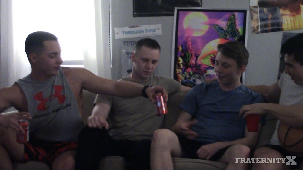 The guys at Fraternity X have a new video and it is called “Pay Up” : This dude came into our frat house thinking he could drink our beer and smoke our buds. Fuck him! Bitches like that have to pay a cover fee. Or we’re taking it out on their ass. Like an ATM.