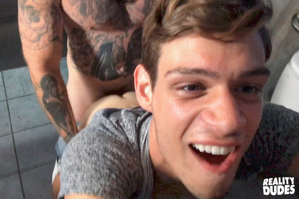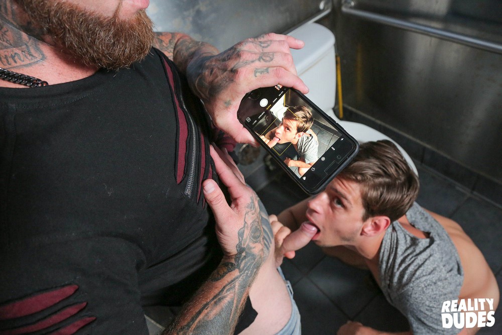 Reality Dudes‘ sub site Dudes In Public released a new and hot scene today. What do you do when you discover someone filming you while you use a urinal? You bend him over and teach him a raw lesson in manners. Watch as Gage Unkut and Michael DelRey, two big dicked hunks, fuck and suck all over a public bathroom without a care in the world. Ignoring the fact that they could be caught at any second, they work each other hard until they eventually slather the floor with their cum.