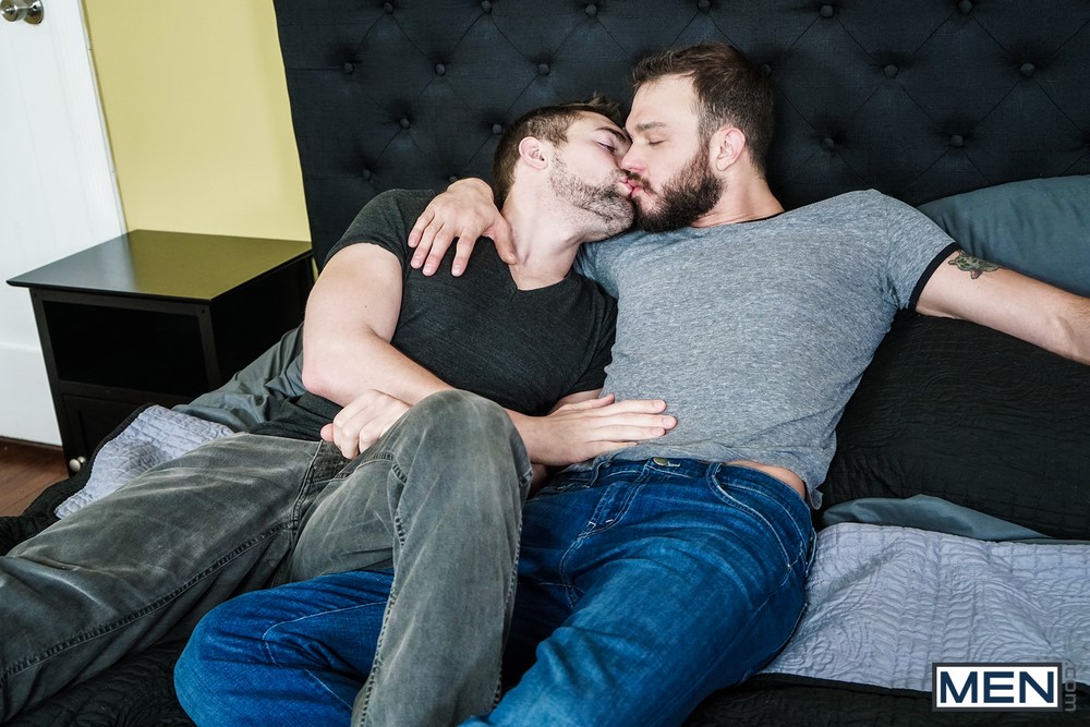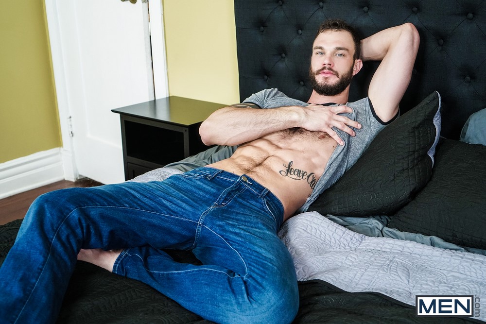 Gay porn mega site Men.com released the third scene from a brand new mini-series, called “Polyamor-Ass“ today. Griffin Barrows is jealous that the other guys are spending extra time with Cliff Jensen, so he wastes no time hopping into bed and stroking that man meat. Cliff realizes the sex-schedule isn’t working out, and let’s Griffin have his way with him and his gorgeous cock.