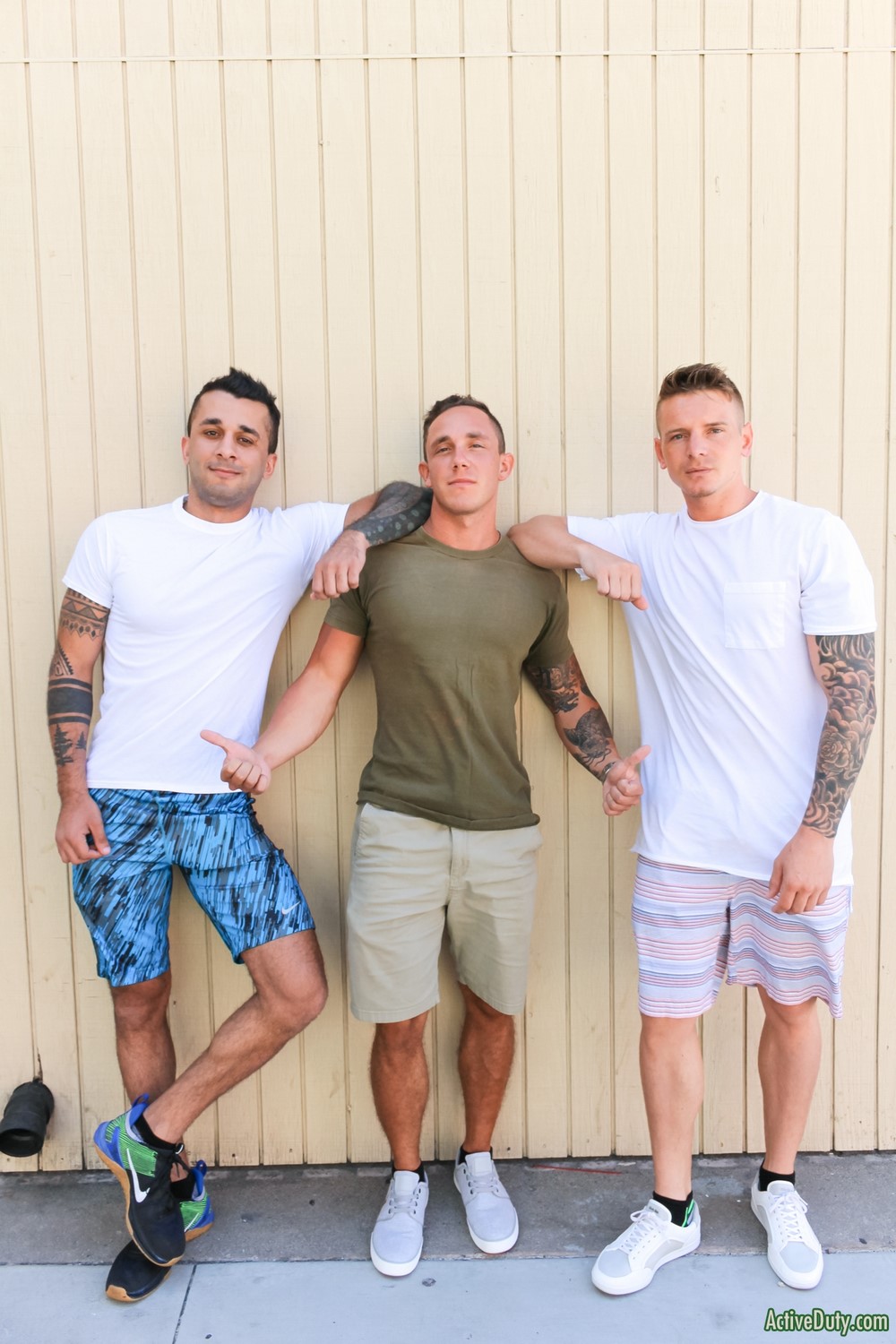 Active Duty released a new scene today. Dirk has them all come into the room and without many words they get straight to the point and begin to take their clothes off which leads them all into one nice 69. Dirk looks on we get a great eagle eye view from above with all three of these sexy men intertwined sucking cocks and feeling each other's sexy bodies.
