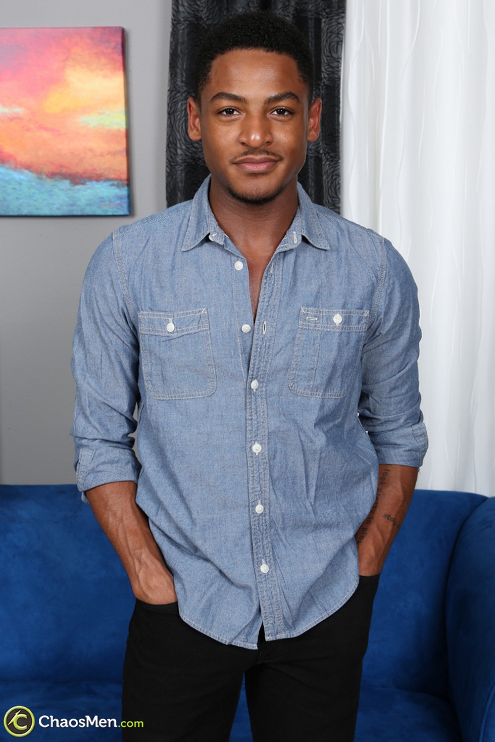 He is a mix of Haitian and West Indies descent, giving him beautiful skin and a big bubble-but that demands attention. He gives one of the best ass show-casing in both the photos and the video, so Tops will be super pleased. Bennett is a sweet guy. Easy going, but a little self-conscious. He gets anxious about his appearance and life in general. Despite that, he was calm and relaxed for the solo, and really enjoyed putting on a show for us. His cum shot is tremendous too! Huge streams of white cum shoot out like a fountain, covering his stomach!