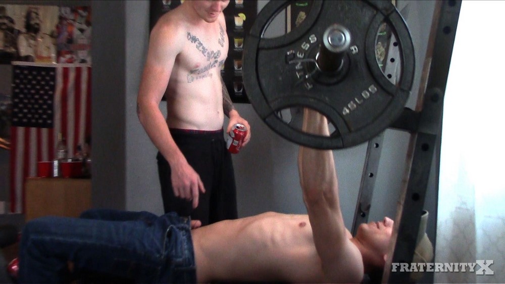 The guys at Fraternity X have a new video and it is called “CAGED BITCH” : We were running low on bud and this douche poured some into the cage for the house bitch. Nothing is worse than wasting a good cold one. So we threw his ass over the cage and pounded his hole while we watched the UFC fight. Woo-hoo! We love fucking bitches!