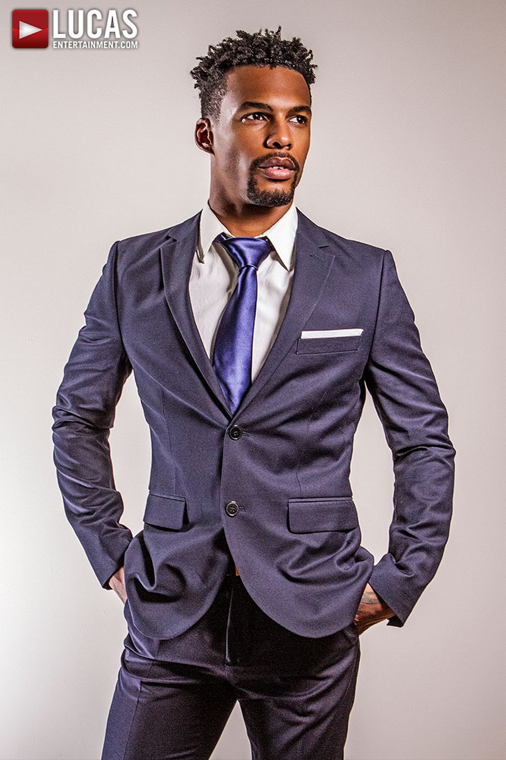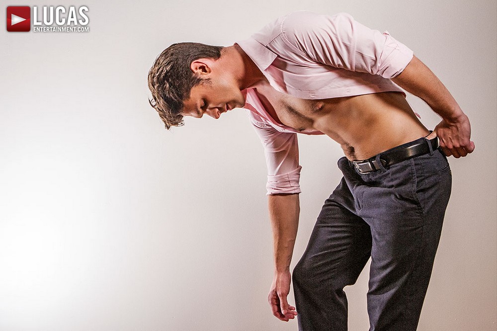Jacen joins Devin and they stroke together. But the longer Devin looks at Jacen’s hard-on the more he wants to taste it. The blowjob leads to the guys stripping off more of their suits and fucking each other in the ass bareback. At 22:50 you’ll see Devin completely naked, but Jacen still has his dress shirt and tie partially on -- revealing action-figure stomach of Jacen as he pumps his dick in Devin’s tight ass.