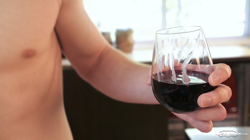Jake got caught in the shed getting a blowjob then I met with him in the kitchen, where I set up my video equipment to do some interviews of my models during the day. Jake was still hard and didn't want to return to the party like that, so we decided to take advantage of his hardon and play a trick on our friend Remi, mixing his wine with Jake's cum. Remi had already too much to drink so we doubt he will notice it. Jake didn't mind me filming him while he jerked off and made sure that no one was sneaking up on him.