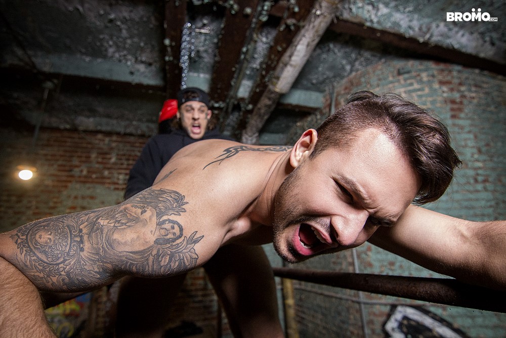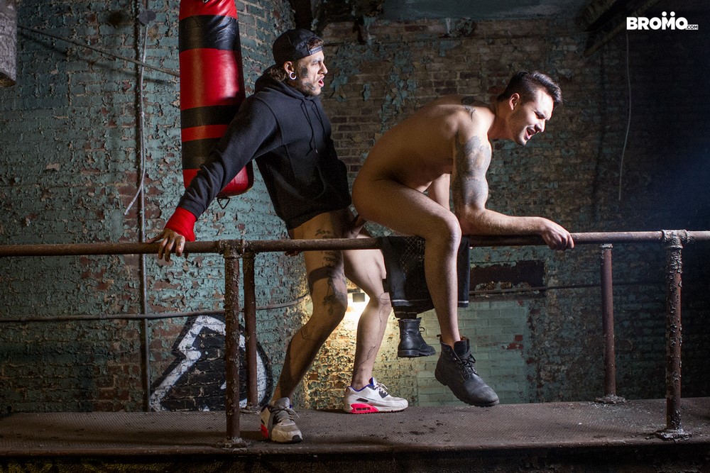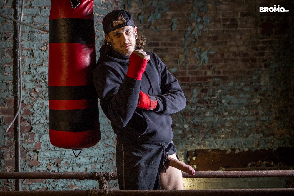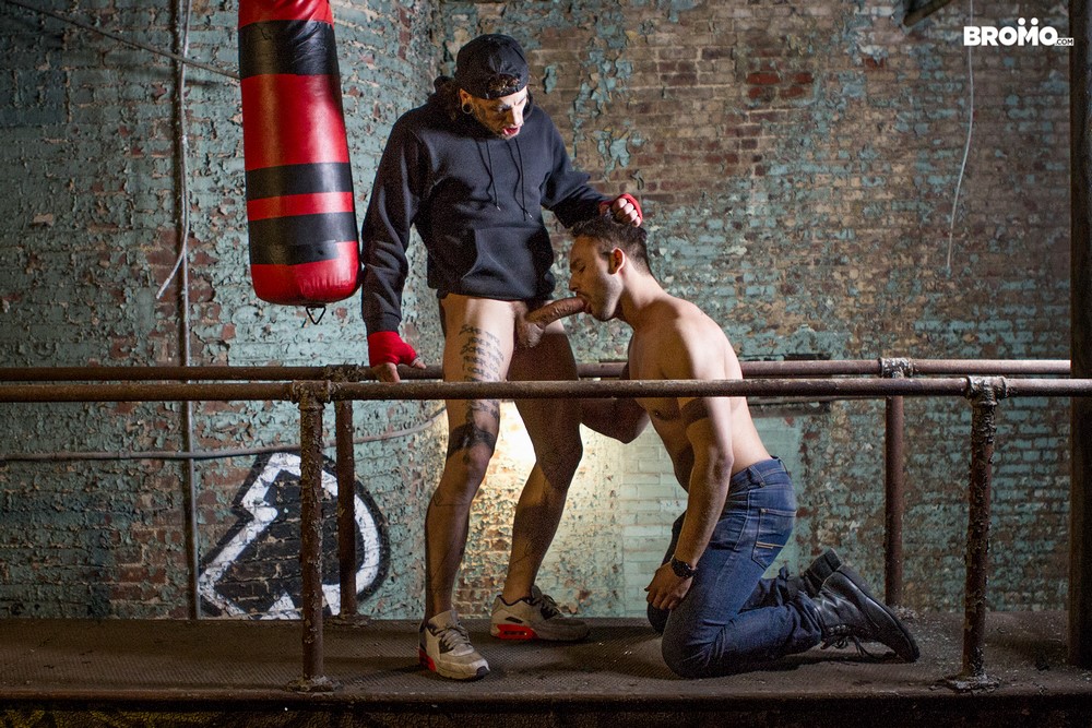 Bromo released part 1 of a new series today and it is called “No Holes Barred”. Bo Sinn dominates Jax Damon in this first installment of No Holes Barred. Jax Damon is caught lurking in the shadows by Bo Sinn during his boxing warm up. The tattooed stud whips out his monster cock and feeds it to Jax. Jax takes an intense pile driving pounding from Bo Sinn until his rough top jerks out a fat load all over his face.