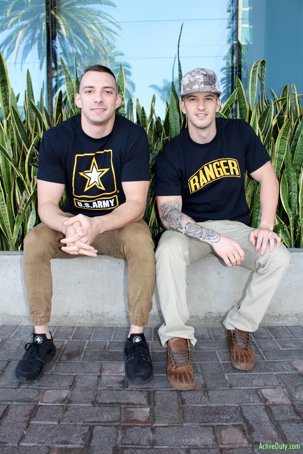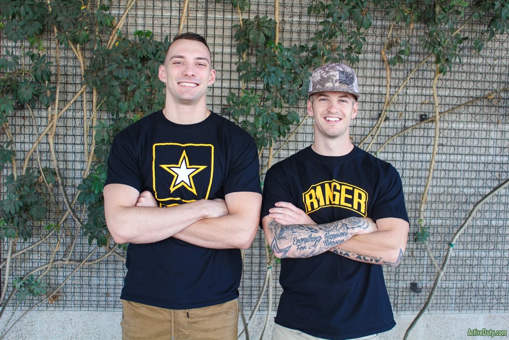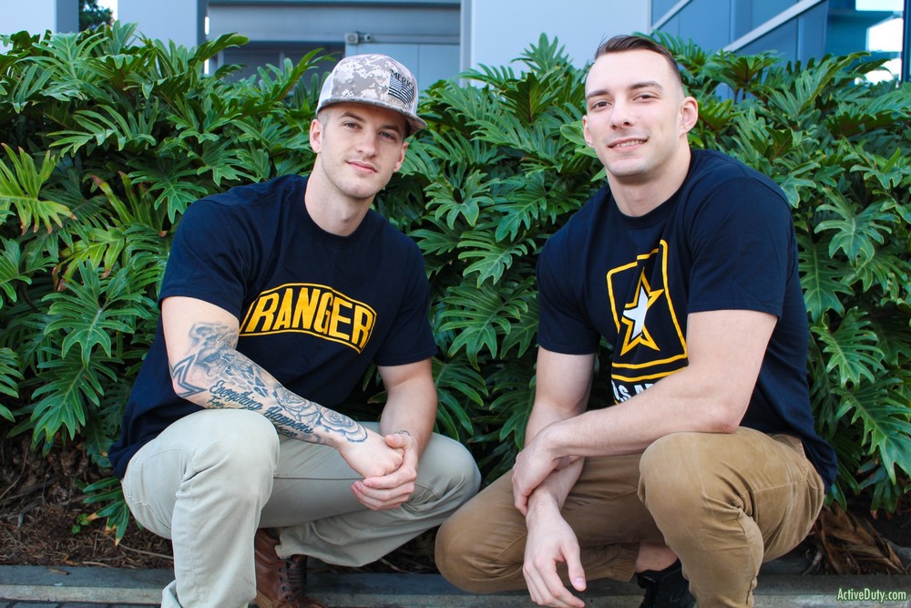 Active Duty released a hot new scene today. Our sexy men have a passionate connection as they begin to kiss right after introductions. The slow moving kissing and rubbing soon leads straight into them on the bed in just some red underwear with their big bulge's very noticeable. Johnny B wraps his fresh recruit mouth around Quentin's hard waiting cock. Quentin Gainz wants to see just how good this rookie really is.