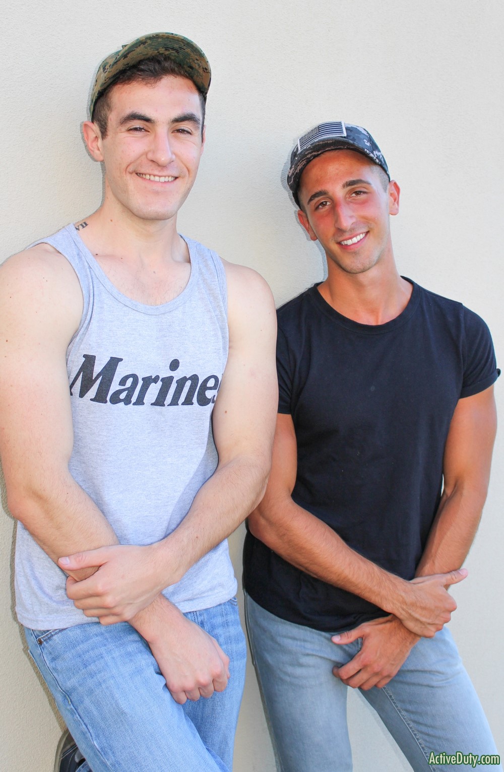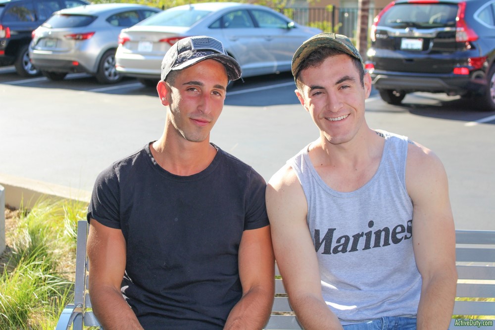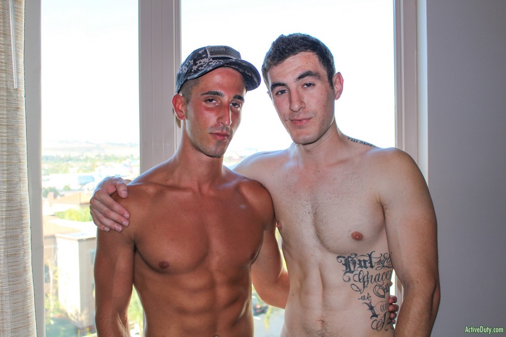 Active Duty has some hot recruits for you today. Golly, talk about a sexy duo who know all the right moves! This is Jake Grey and Johnny, and they're hooking up with each other for the first time, but these two have already dipped their toes in the water here at AD. After some quick chit chat with Claude, they take off their shirts and jeans, and get their meat stiffened up for a good time underneath their underwear.