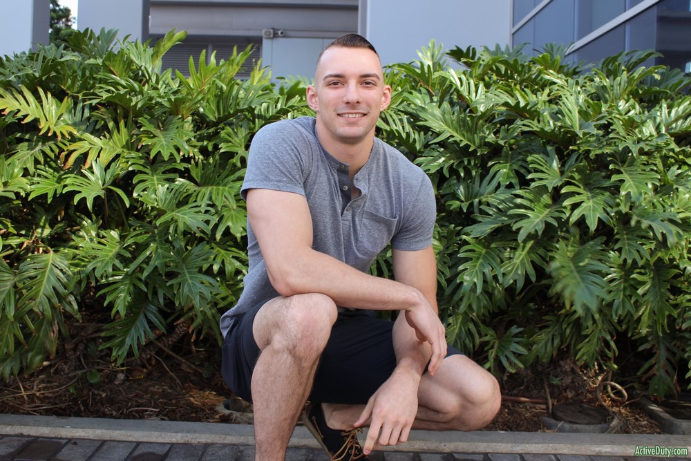 Active Duty released at new solo scene today. Johnny has a very muscular frame which he keeps in top condition. As his clothes begin to come off you get to feast your eyes on his ripped abs and his very hard cock. This sexy man has some very muscular thighs that are just beautiful to look at it. He doesn't have much hair on his body but he has it where it counts.