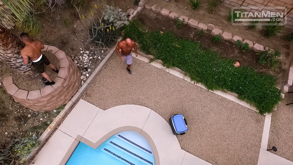 During a break in yard work, Julian Knowles needs relief from the heat. Jesse Jackman suggests he cool off in the pool—and then joins him for a skinny dip. Their roughhousing escalates as they take their kissing poolside—and Julian nurses on his big bro’s big dick. Jesse deep throats his beefy bud back, planting his nose in Julian’s bush before looking up at him with a smile. Julian sucks him again before offering himself, gripping onto the post as Jesse gruntfucks him doggie style. Julian gets on his back, then sits down deep on Jesse before they pump out their wads.