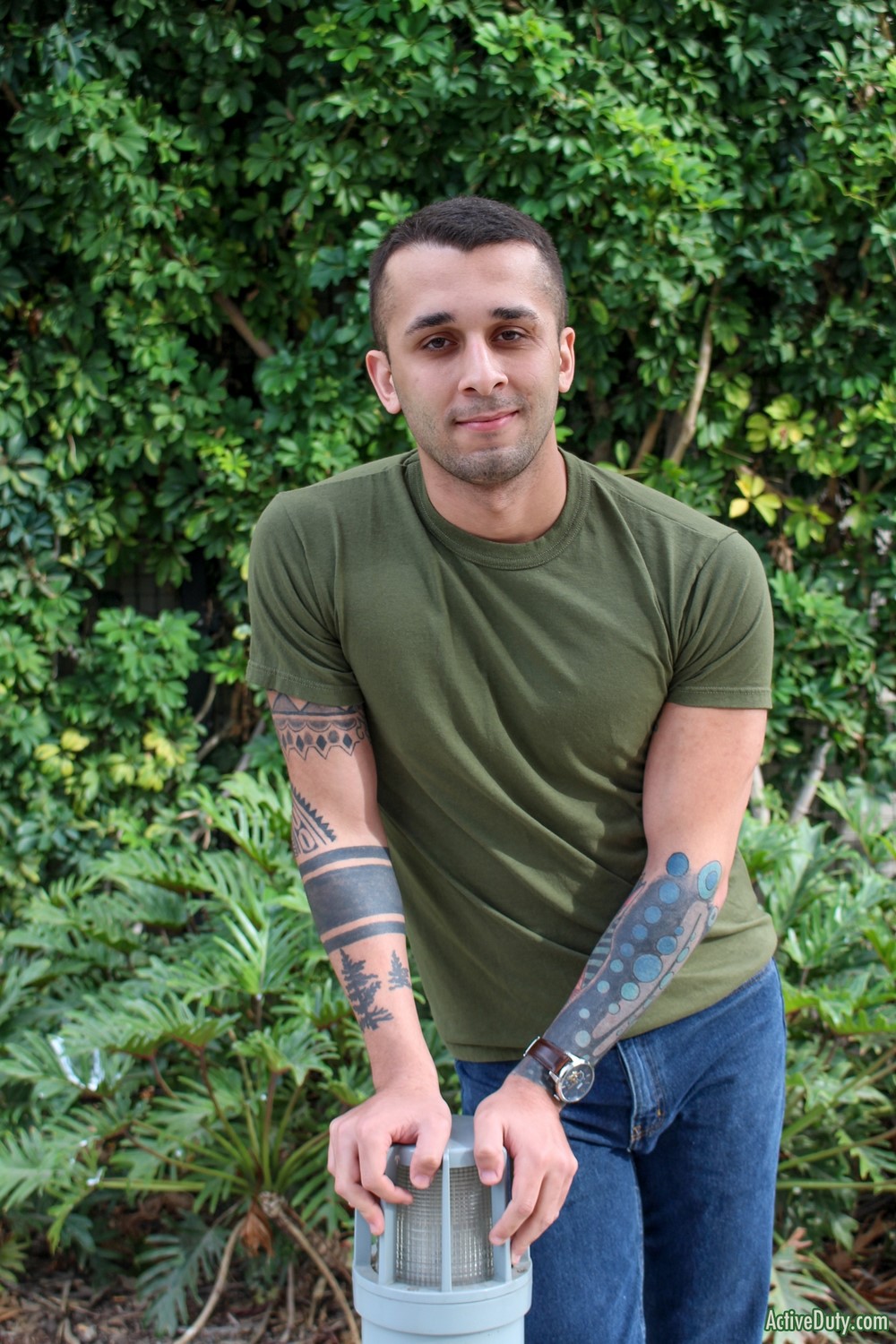 Active Duty released at new solo scene today. Laith is always up for a new adventure and he has come to the right place. He is in great shape with some ink spread across him and a very thick cock. Laith kicks back on our couch and slowly starts to touch himself. As he becomes more comfortable he slips his clothes off to reveal his fat hard cock sticking straight up.