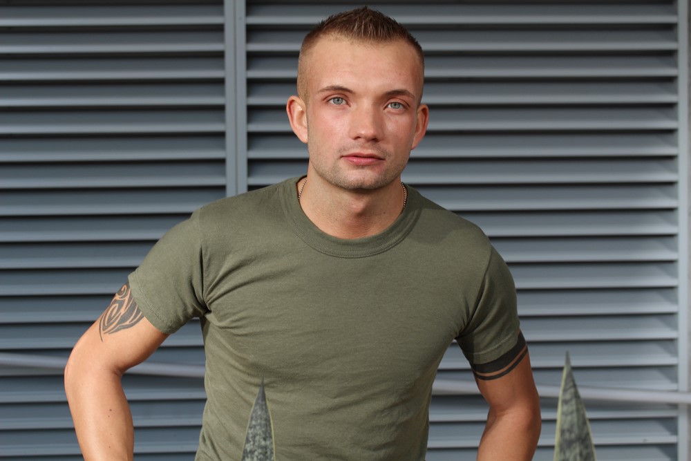 Active Duty released a new scene today. Leo Wyatt has amazing skin as he slowly reveals his tan smooth body. He only has some peach fuzz on him which looks golden at times when the light hits him just right. Leo doesn't shy away from the camera as he bares all for us to see. He may be skinny but those skinny men are always packing and this time is no different.