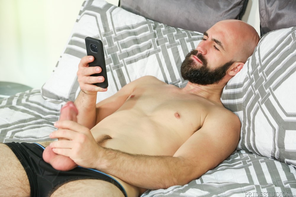 Pride Studios released “Don't keep me Waiting!” today. Lex Ryan is home in bed looking at porn on his phone stroking his big cock through his underwear when he decides to call Cameron Kincade. He has wanted to fuck Cameron for a while, but Cameron has been hesitant because of the size of Lex's cock. He tells him he will be gentle and to get his ass over to his house right away.