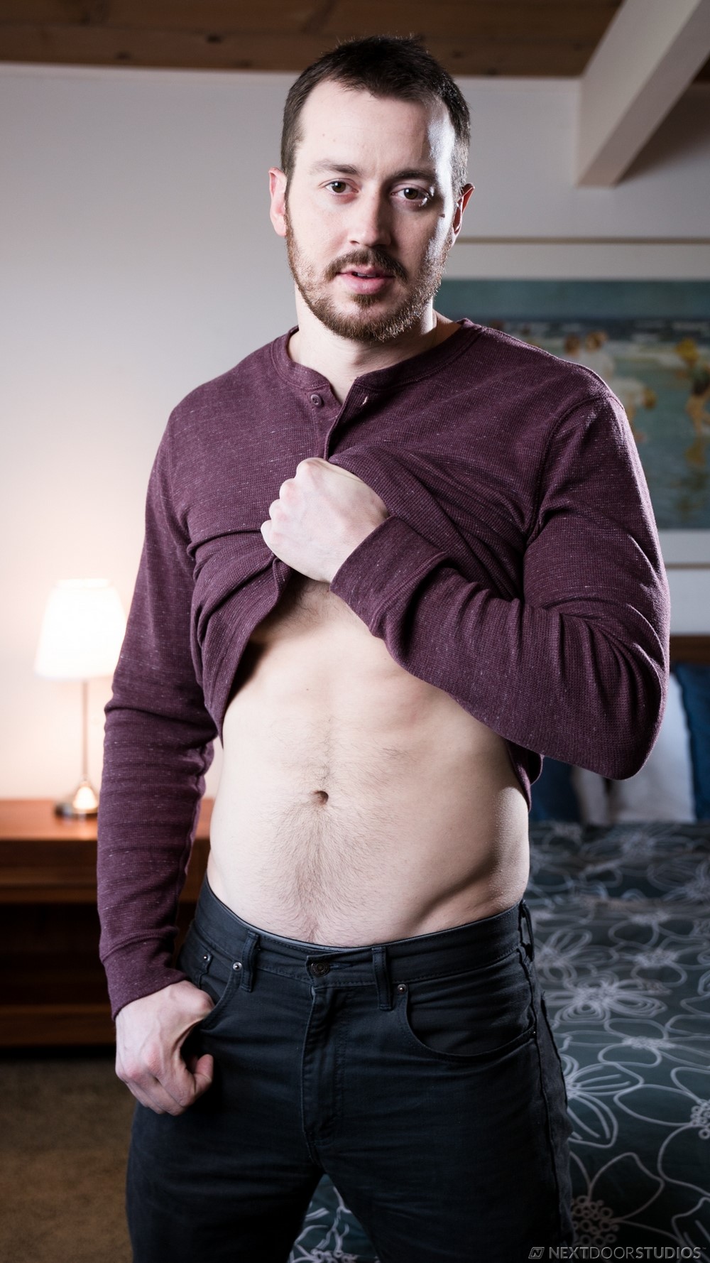 Next Door Studios released “Back Door Buddy” today. Mark Long has mixed up his days and now he's got a problem on his hands. With his girlfriend in the next room, he comes out of the shower to find his secret side piece waiting naked on his bed. Adam Gregory has cock in hand and is ready for his weekly toss, and Mark isn't sure what to do.