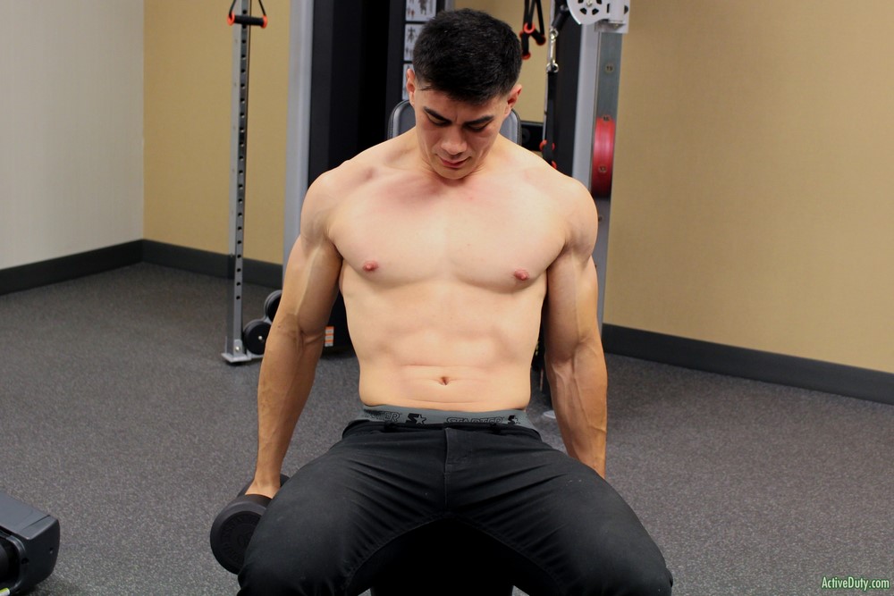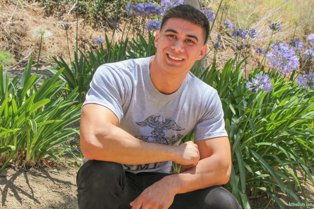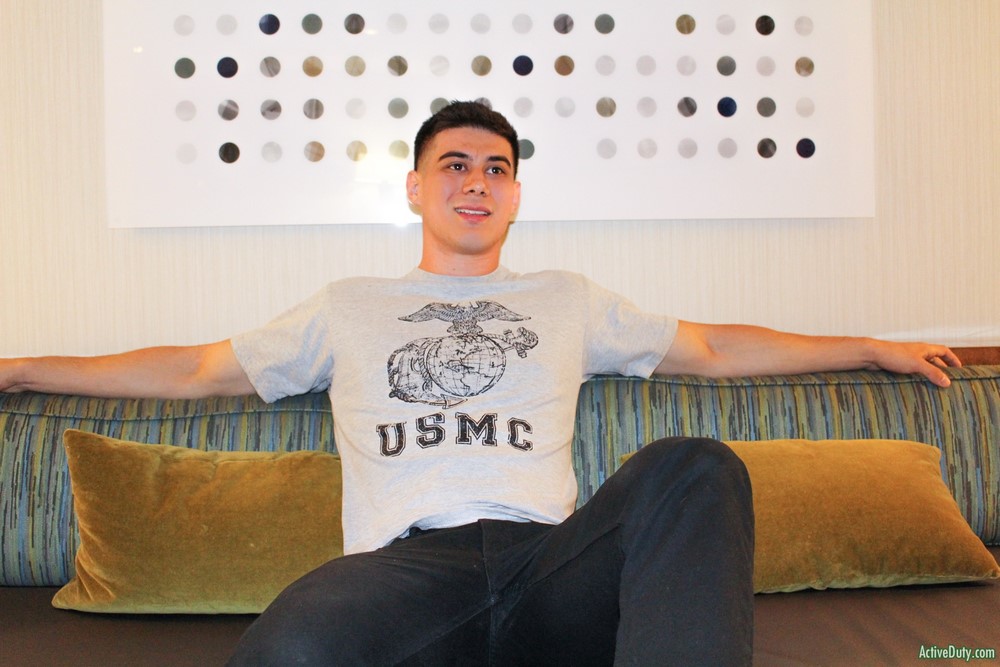 Active Duty has a new perfect specimen today! This is Zach, a Marine who doesn't shy from a challenge and is always seeking to push his boundaries in the name of adventure. And that's what's brought him here with us! Once Claude gives him the green light, Zach is eager to peel off his shirt and show us his incredible chest, stomach, and arms. Wow, Zach is the total package!