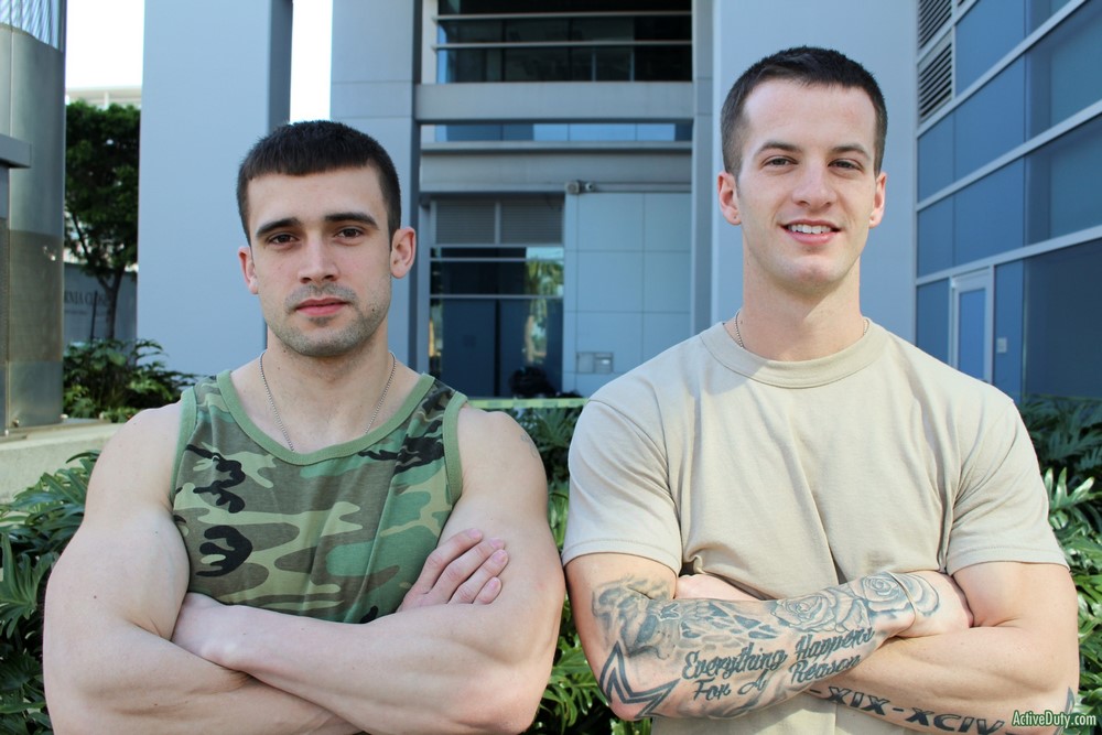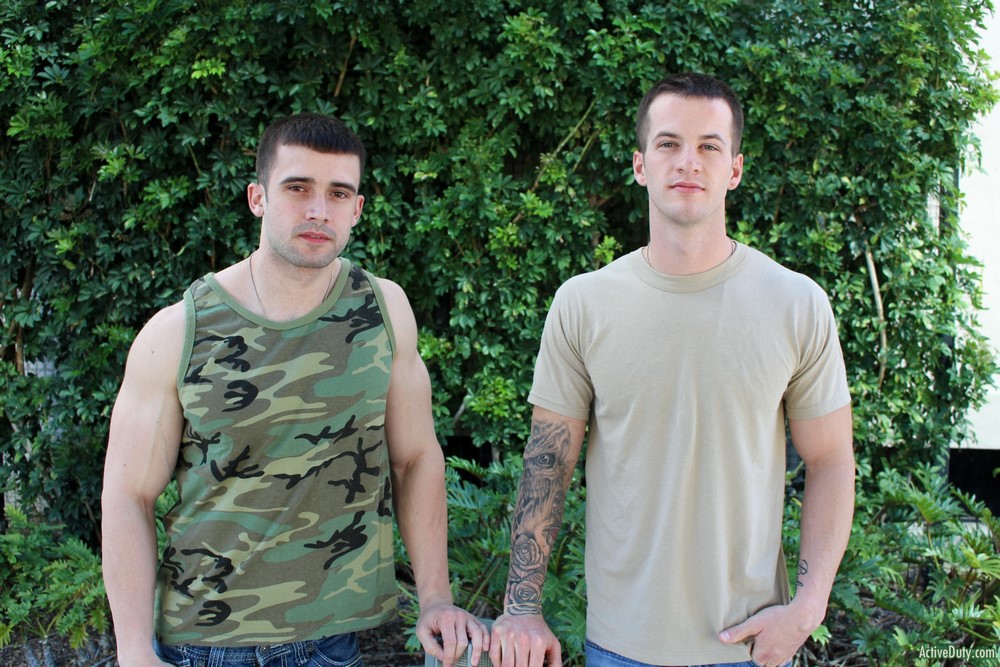 Active Duty's best of the best is back and that's Quentin Gainz, one of our best combat veterans by far. He's back with Mathias who has never been with a man and only did a solo with us which was amazing and one of the reasons we brought him back. Once Quentin saw pictures of him we brought him back from leave and now Quentin's the lucky guy to pop Mathias' man cherry.