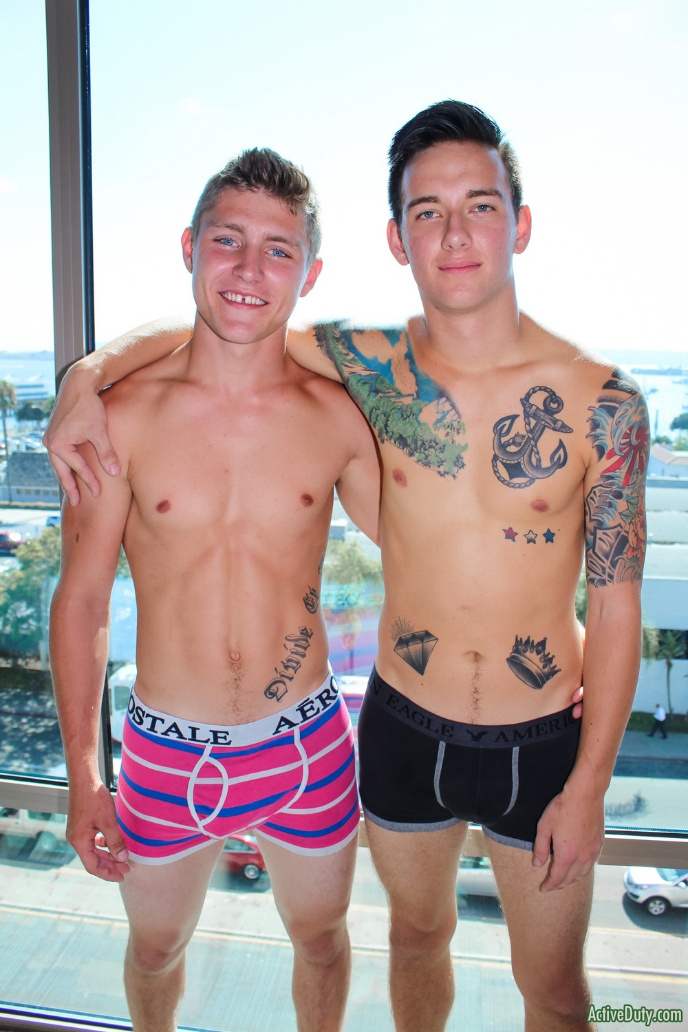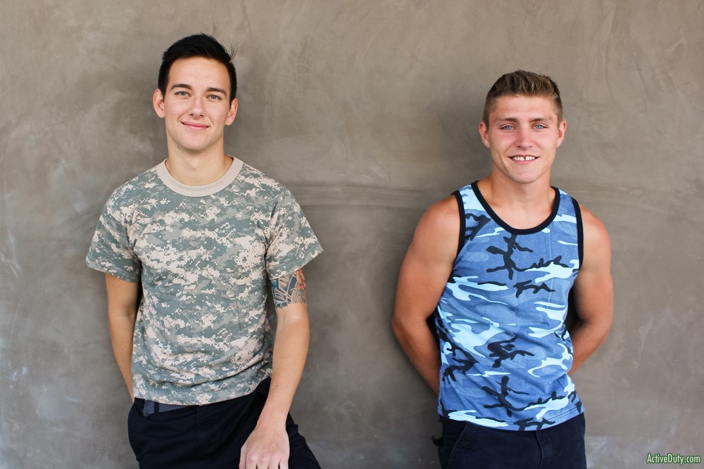 Boy, talk about two peas in a pod! Active Duty matched up Matthew Reeves with Dante, and they sure out did themselves. Matthew is first to suggest a little fooling around, and Dante doesn't hesitate to lean over and take Matthew's growing cock into his mouth. Some nice, passionate sucking gets things heating up quickly.