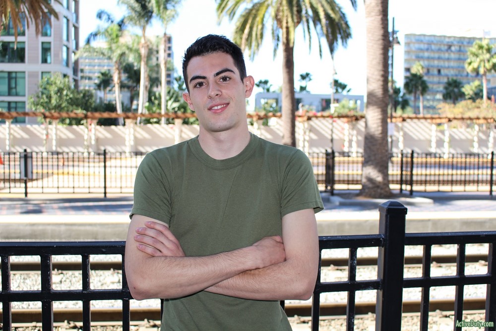 Myles has a sexy nerdy look to him as one of our newest recruits here at Active Duty. Once he drops his pants we find out real quick why they call him Myles Long. The skinny soldiers always have really long cocks. Myles can barely hold onto his own big dick as he needs two hands to keep it under control. He's a lanky fellow with modest body hair and eager to show off his amazing dick.