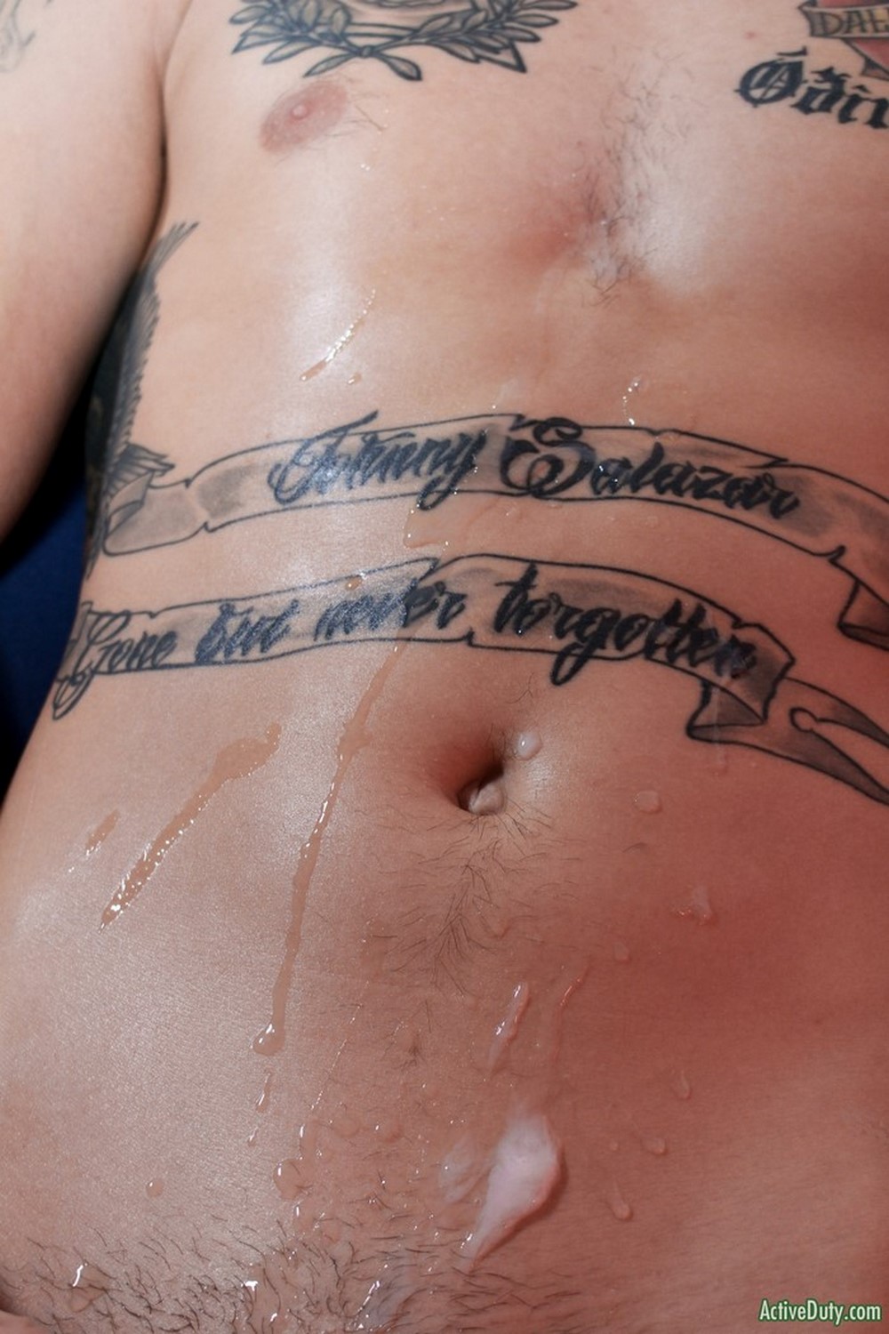 Active Duty released at new scene today. Richard Buldger wastes no time after he introduces Alex Michaels. He jumps right on his cock wrapping his eager mouth around it and taking every inch deep down his throat. Richard loves to gag on cock and he likes it messy. Alex's cock is lubed up complete with gobs of spit all over his shaft and dripping down his balls as Richard sucks and gargles on his rock hard cock.