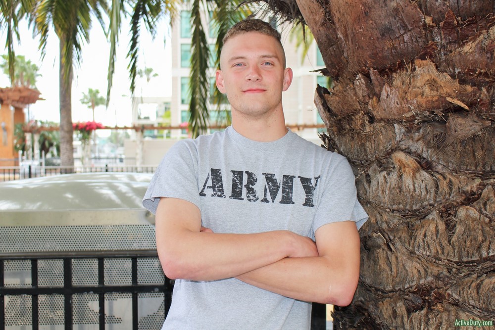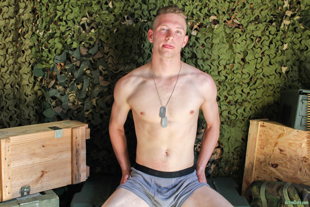 Active Duty released a hot new solo scene today. Hey Troops, A new recruit thinks he has what it takes to be a part of this elite squad we are continuously building. Today we have Rick Sanchez, he's 19 years old, stands 6 feet tall and weighs 175 lbs. When Rick isn't trying out his porn dreams you can find him in the woods hiking on the local trails and enjoying the sun. Rick has a very young look to him and rightfully so when he's barely 19.