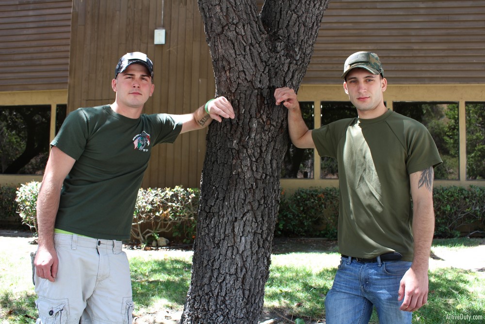 Now these boys are two that know how to have a good time! Ricky Stance and Scott Millie are a great combo and I'm not surprised. Ricky is building his experience here with us at Active Duty and he's been a real 'blast' to watch. At this point, Scott's shown us that he ain't afraid of nothin'. Claude exchanges a few pleasantries with these recruits, but they sure don't mince words.