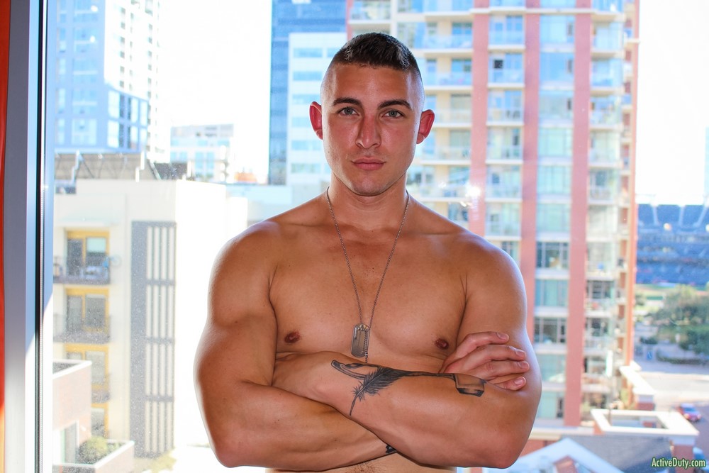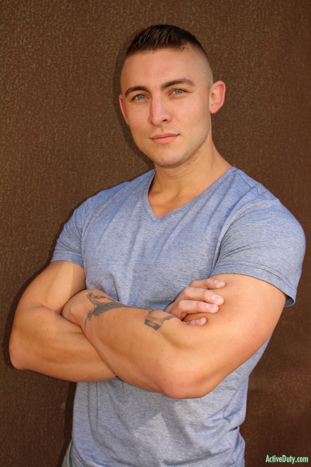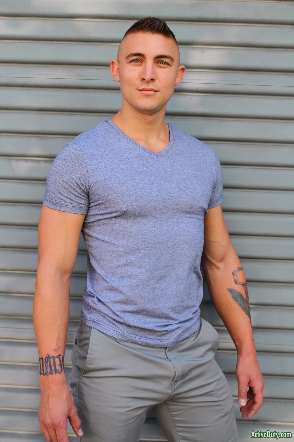 Active Duty : Believe it or not, this gentleman's name is Ripley and he has a fantastic cock. He's a strong, silent type and there's a whole lot of intrigue here. With his clothing on, Ripley looks like he has an incredible body. And once he takes off those layers, we see that was a good bet. He's thick in all the right places. Ripley starts out by peeling off his black undies and fattening up that girthy dick.